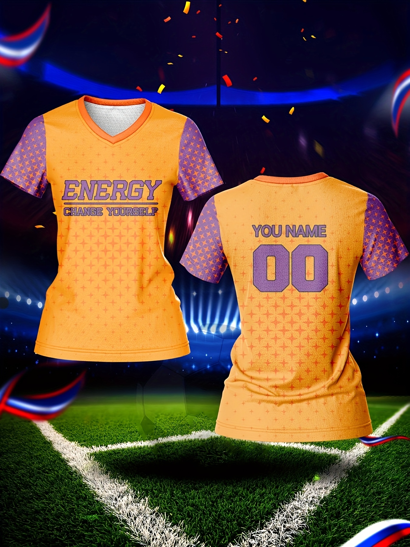 Customizable Women's V-Neck Football Jersey Top - Personalized Name & Number, Breathable, Quick-Drying, Polyester, Sporty Fitness & Casual Wear, Team Sports Jersey | Sporty Vneck Jersey | Knit Construction, Customized Jersey