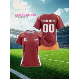 Customizable Women's Plus-Size Football & Baseball Jerseys - Personalized Team Name & Number, Soft Breathable Fabric, Round Neck Summer Sports Casual Wear, Outdoor Team Uniforms