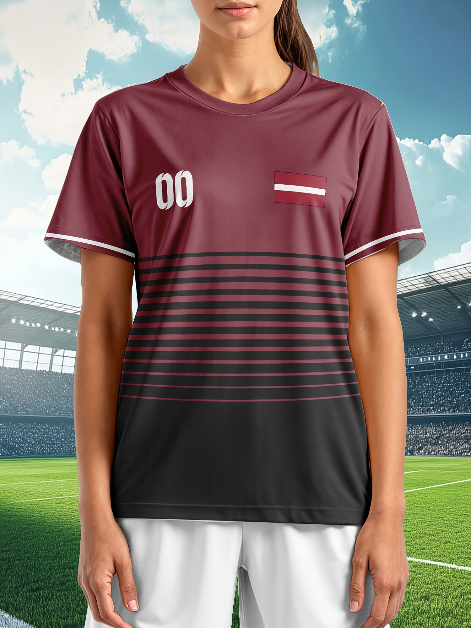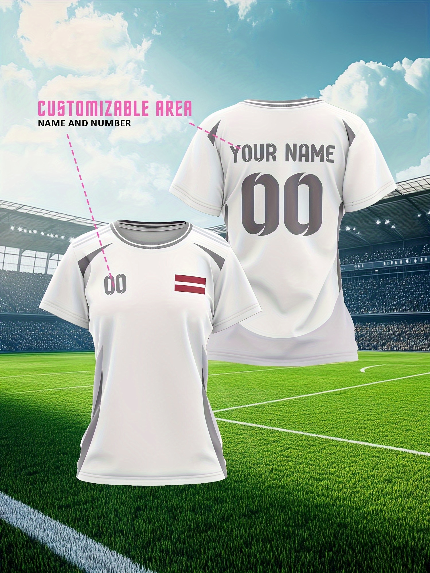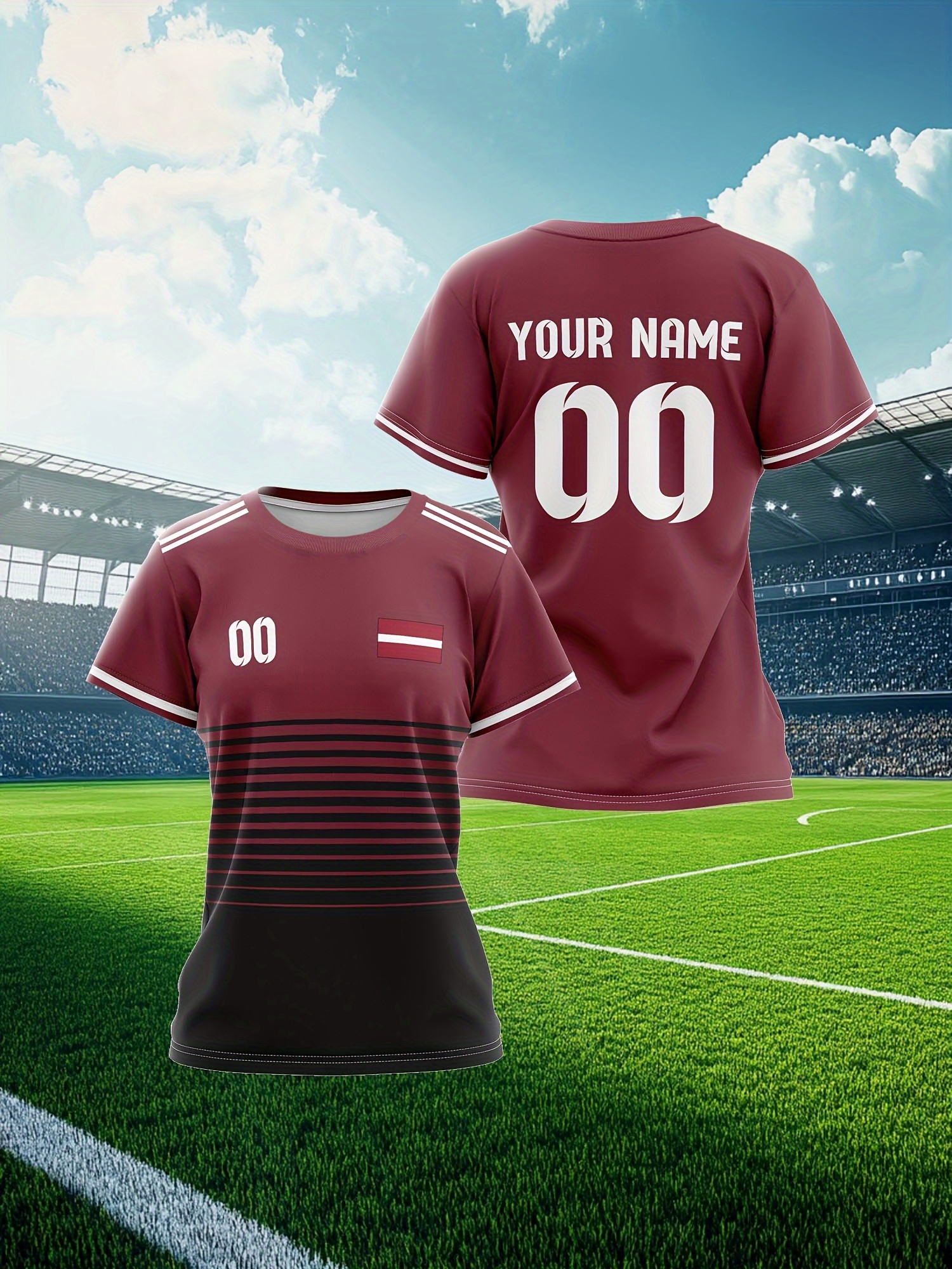Customizable Women'S Plus Size Football Jersey - Personalized Name & Number, Maroon & Orange Soccer Training Shirt with White Accents, Breathable Summer Sportswear for Casual & Team Activities, Soccer Accessories, Durable Fabric