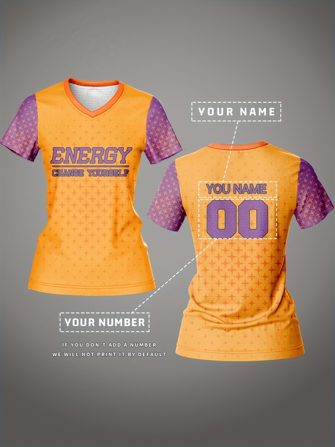 Customizable Women's V-Neck Football Jersey Top - Personalized Name & Number, Breathable, Quick-Drying, Polyester, Sporty Fitness & Casual Wear, Team Sports Jersey | Sporty Vneck Jersey | Knit Construction, Customized Jersey