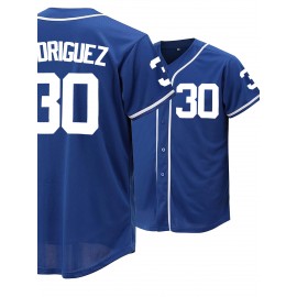 Men's #30 Blue Baseball Jersey - Classic Design, Breathable Button-Up Short Sleeve Shirt for Training & Games, V-Neck, Loose Fit, Polyester, Machine Washable, Game Day Attire | Sports Top | Lightweight Polyester, SHLUCKI