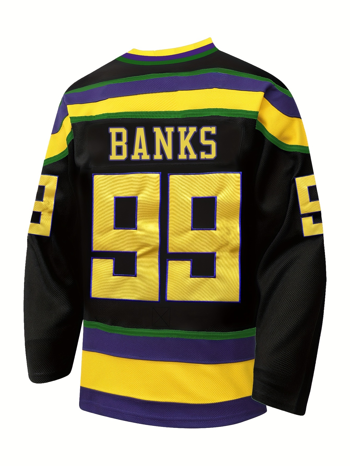 [Embroidered Captain's Jersey] Black Embroidered V-Neck Captain's Jersey - Men's #99 Duck Style Ice Hockey Sweatshirt, Breathable Polyester with Striped Accents, Casual & Sporty for All Seasons