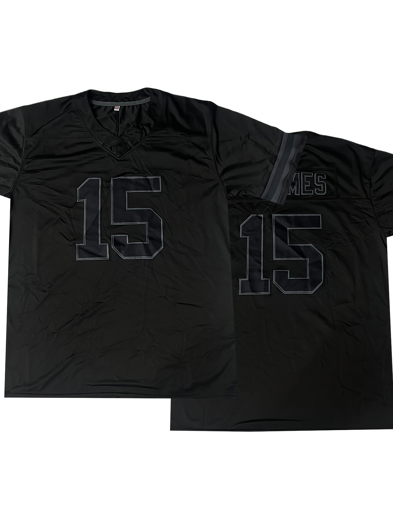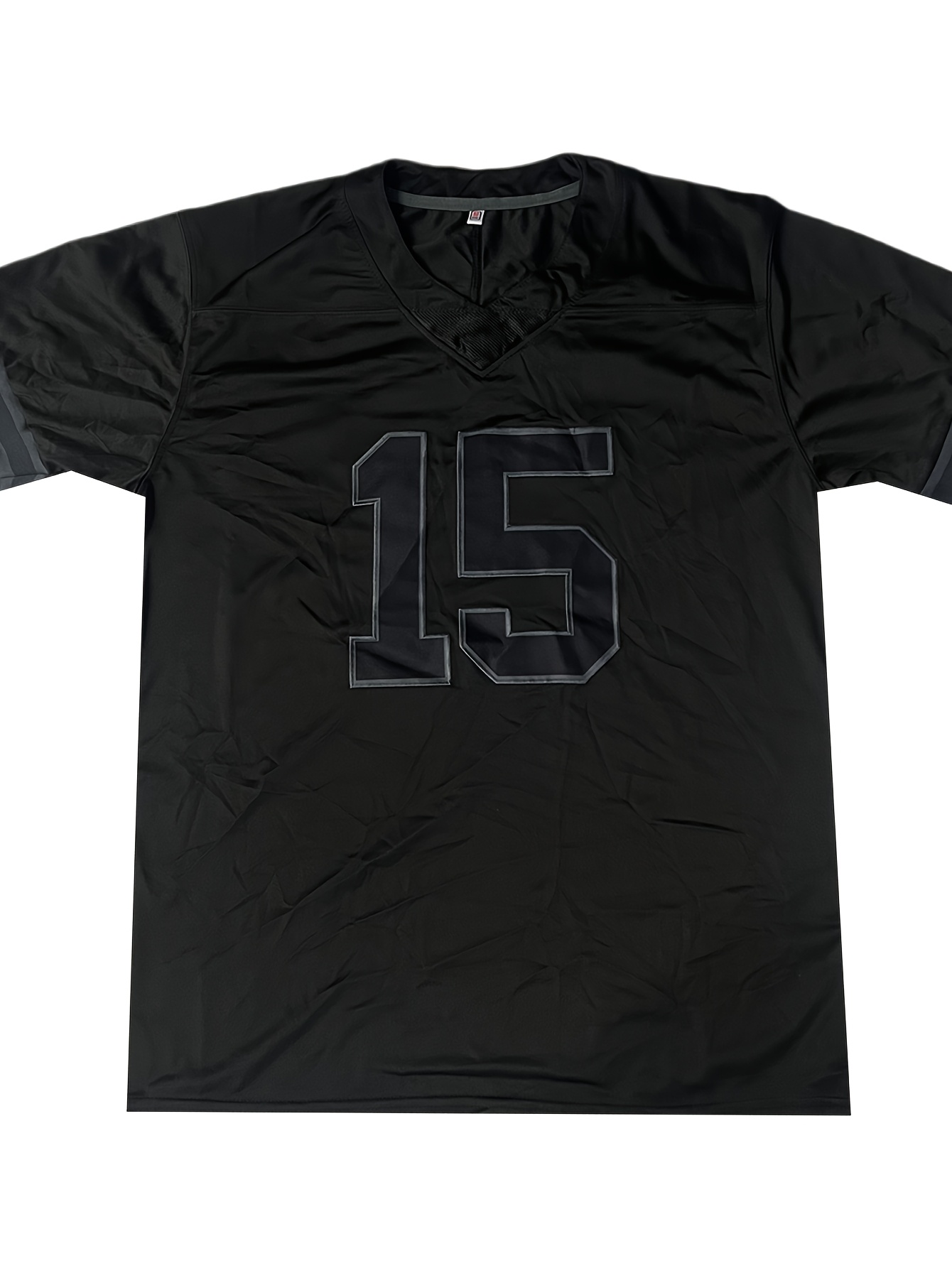 Men'S Black # 15 Breathable Rugby Shirt, Sports V-neck Short Sleeve Training Match Uniform, Embroidered American Football Shirt