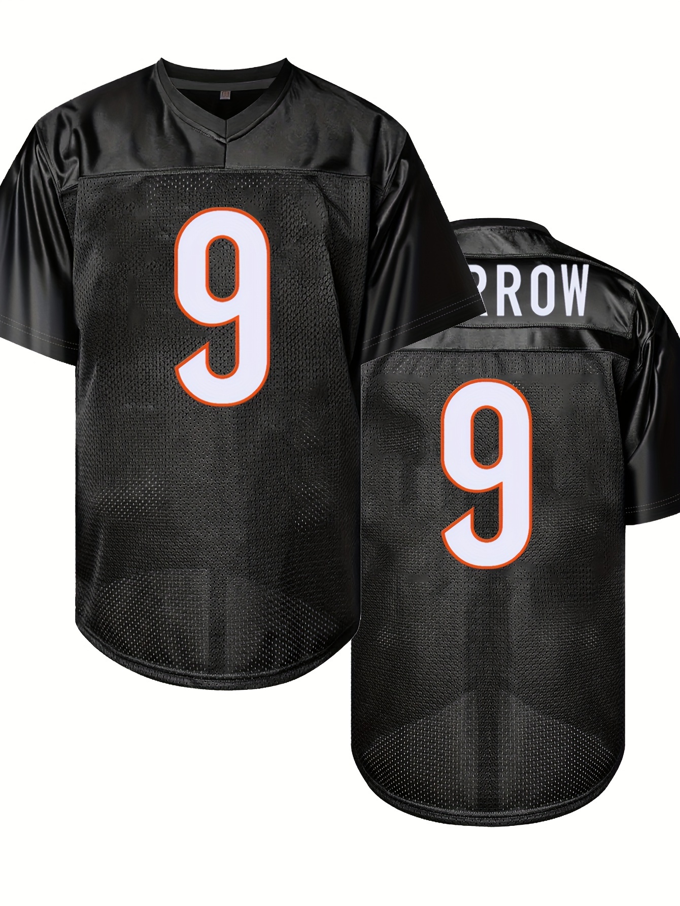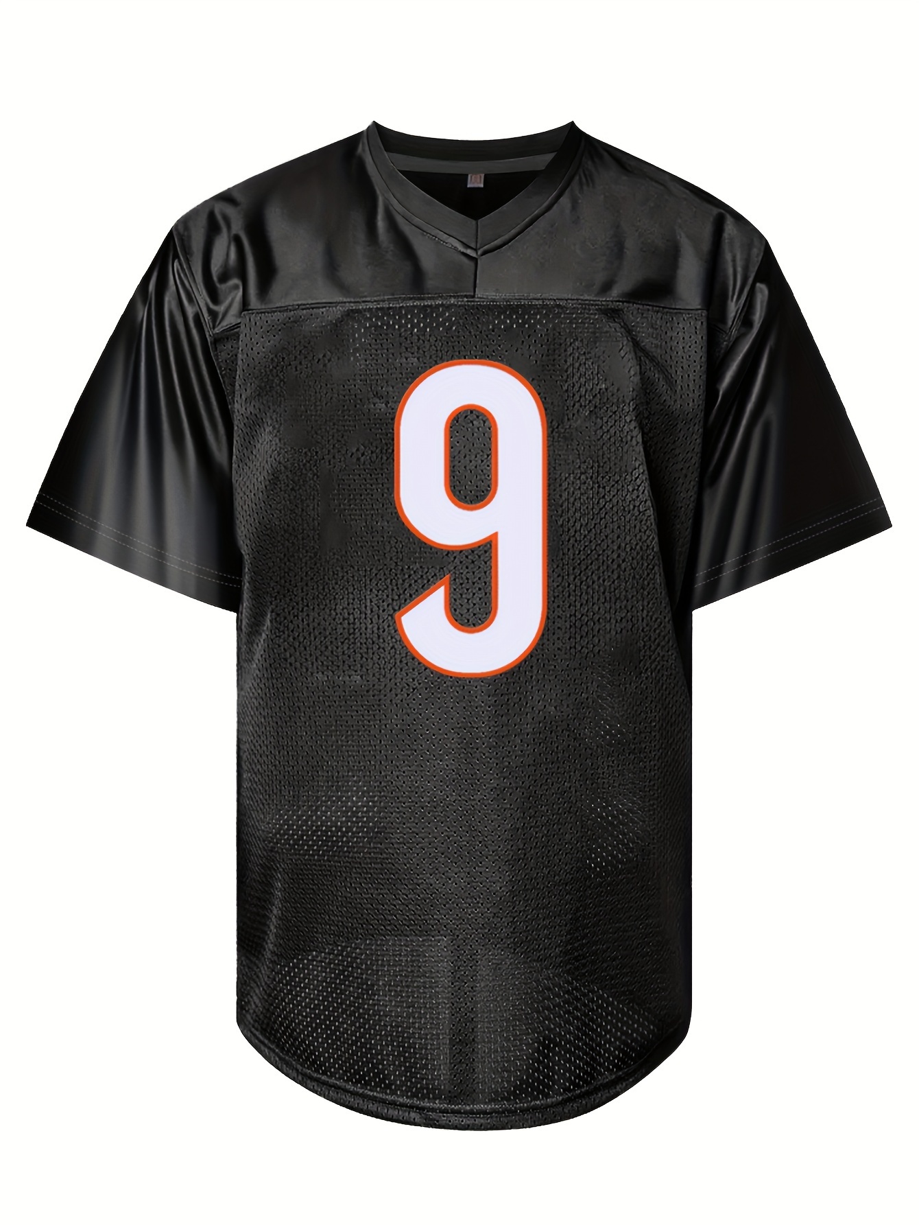 Men's Black # 9 Breathable Rugby Jersey, Sports V-neck Short Sleeved Uniform For Training And Matches, Embroidered American Football Shirt