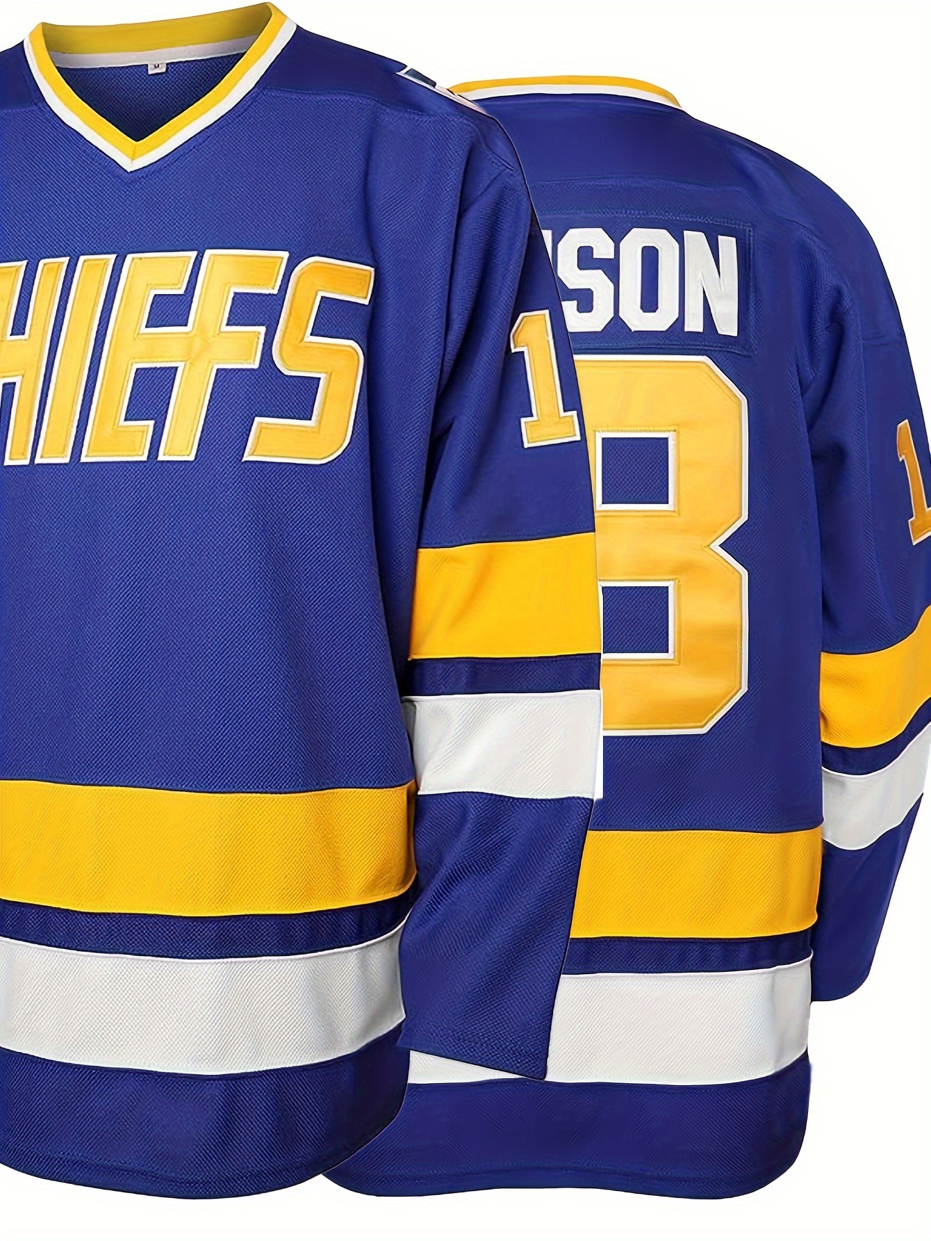 Men's Blue # 18 Ice Hockey Shirt, Loose Embroidered Long Sleeve, Sporty, Fashionable And Casual, Street Breathable