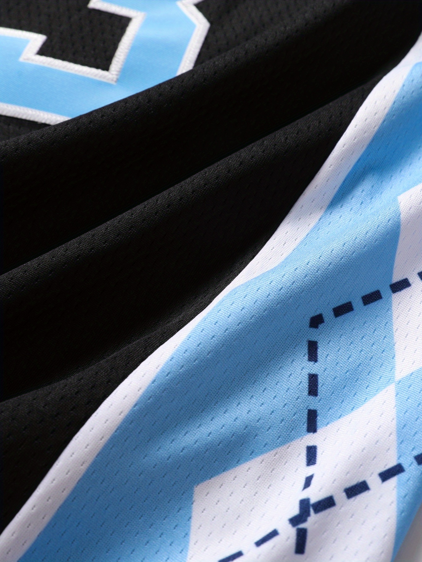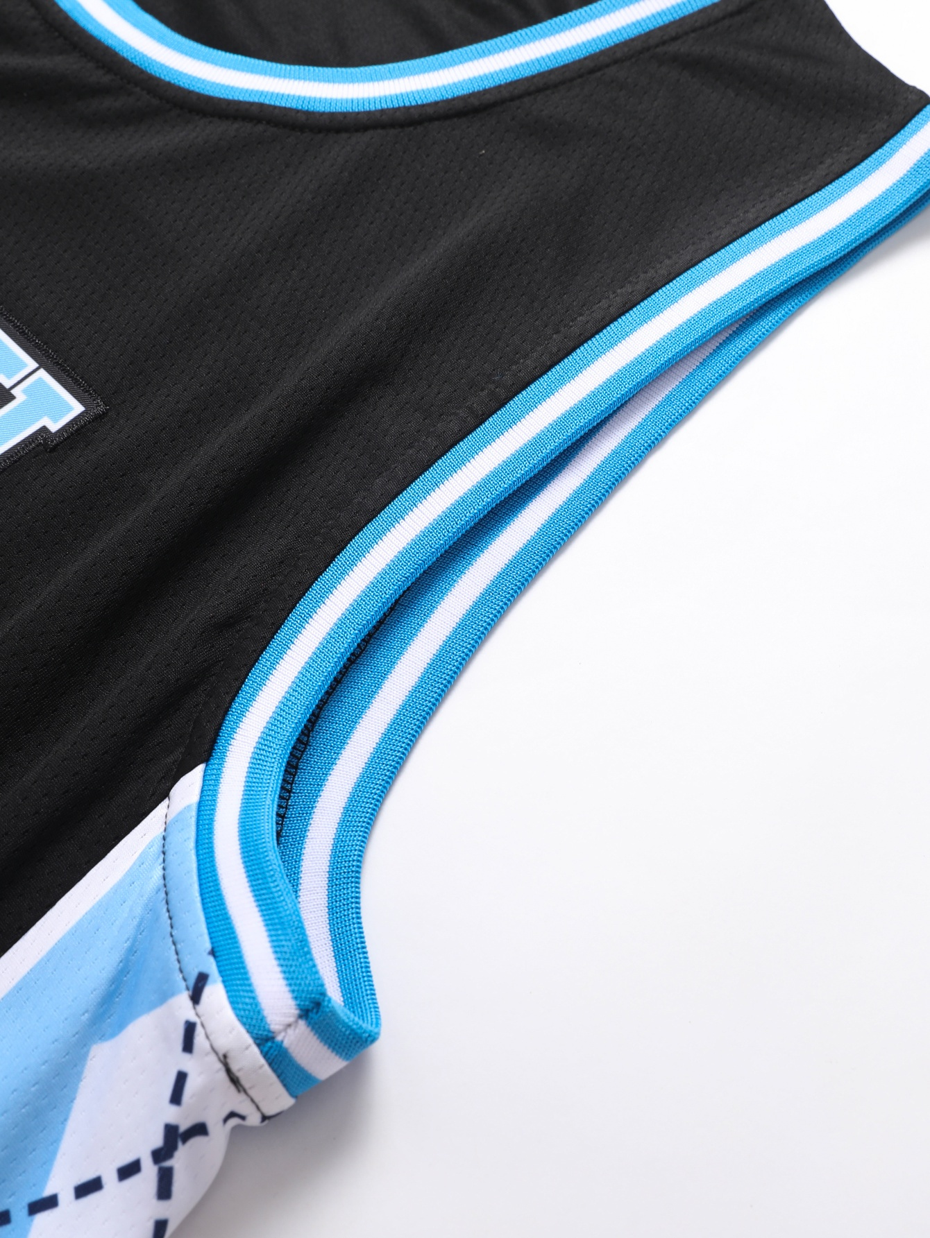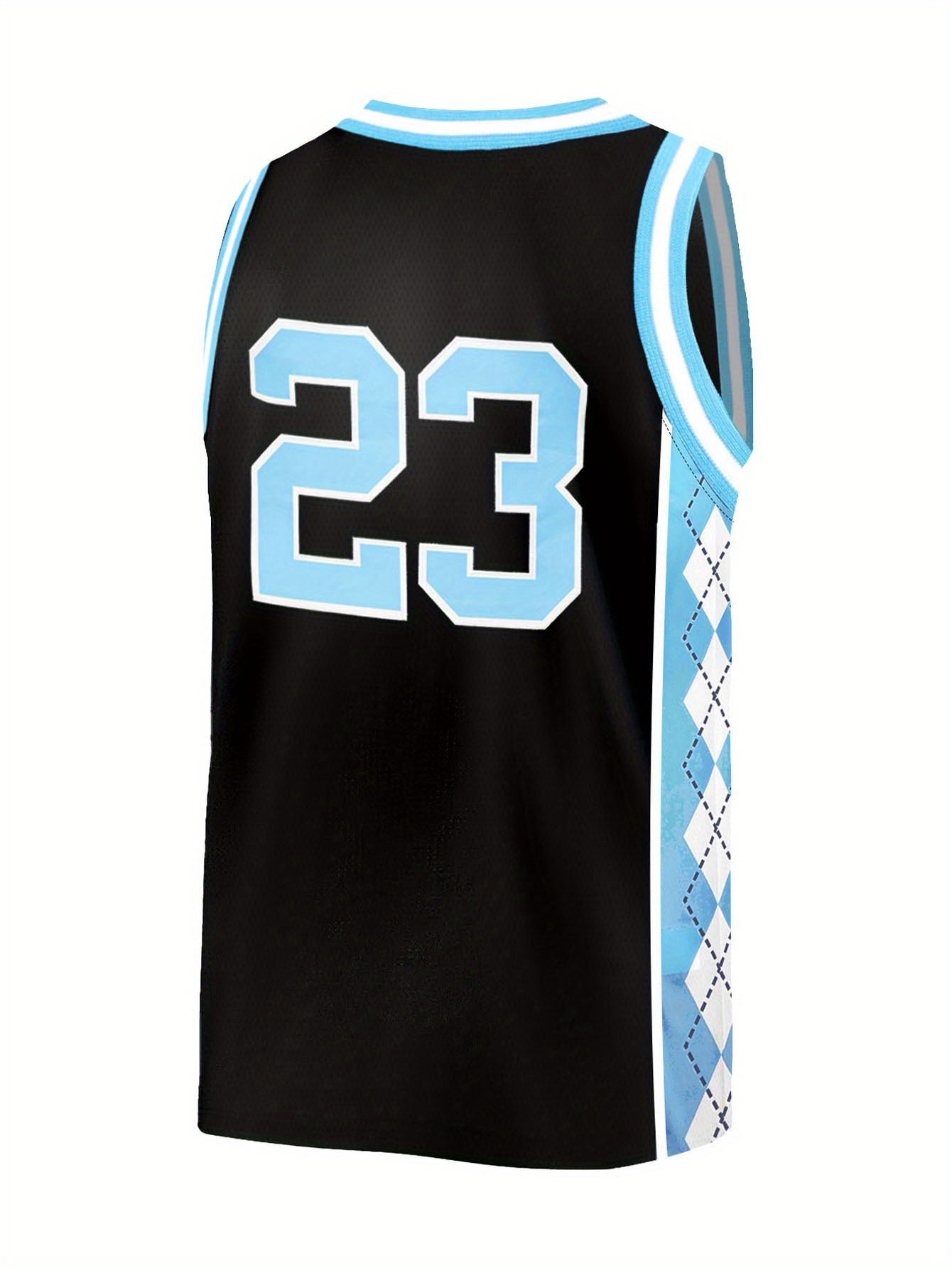 Men'S Blue Black Spliced Diamond Grid Basketball Top # 23 Classic Retro Embroidered Letter Sleeveless Sweat wicking Breathable Tank Top Basketball Suit
