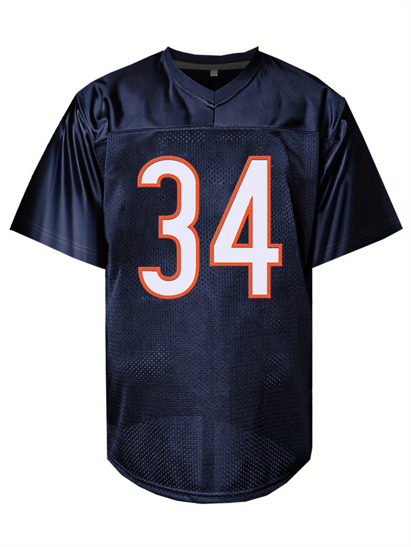 Men'S Deep Blue # 34 Breathable Rugby Shirt, Sports V-neck Short Sleeve Training Match Uniform, Embroidered American Football Shirt