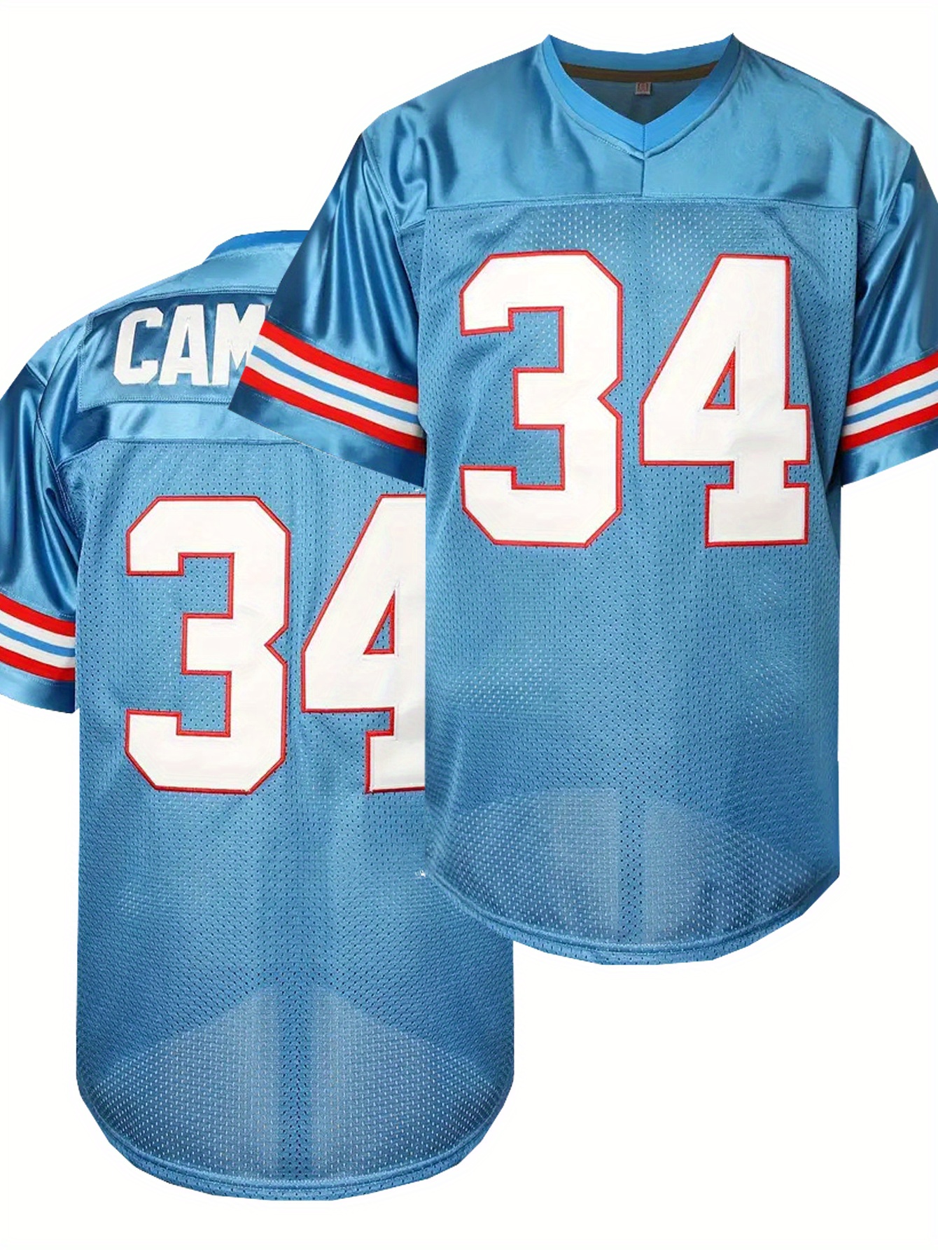 Men's Moon Blue #34 Embroidered American Football Jersey - Loose Fit Breathable V-Neck Rugby Top for Casual Streetwear, Sports & Outdoor Activities | All-Season Comfort, Machine Washable, Athletic Leisure Wear