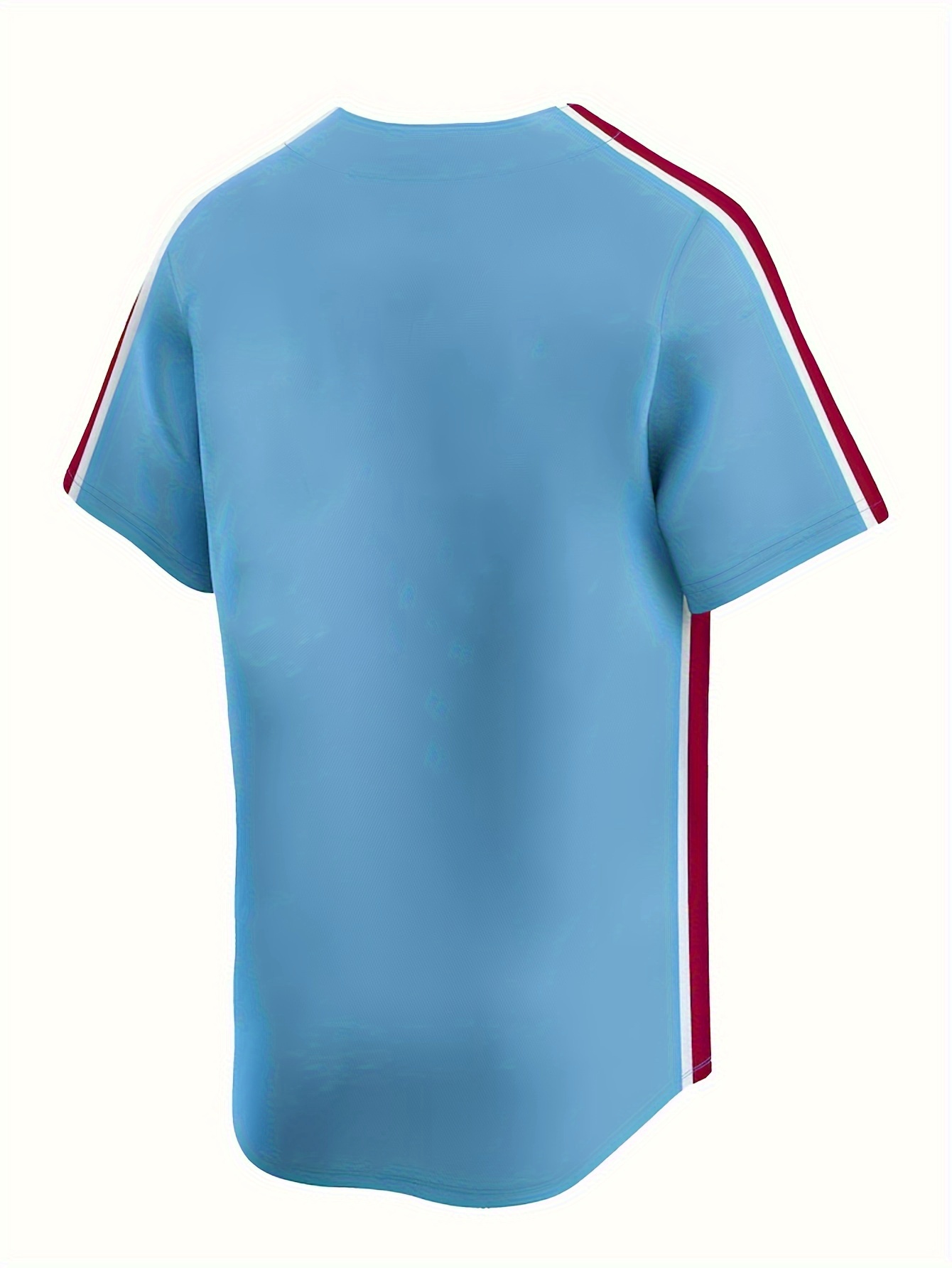 Men'S Moon Blue Baseball Shirt, Classic Letter Embroidery Design, Button Style Short Sleeved Breathable Shirt, Used for Training And Competitions