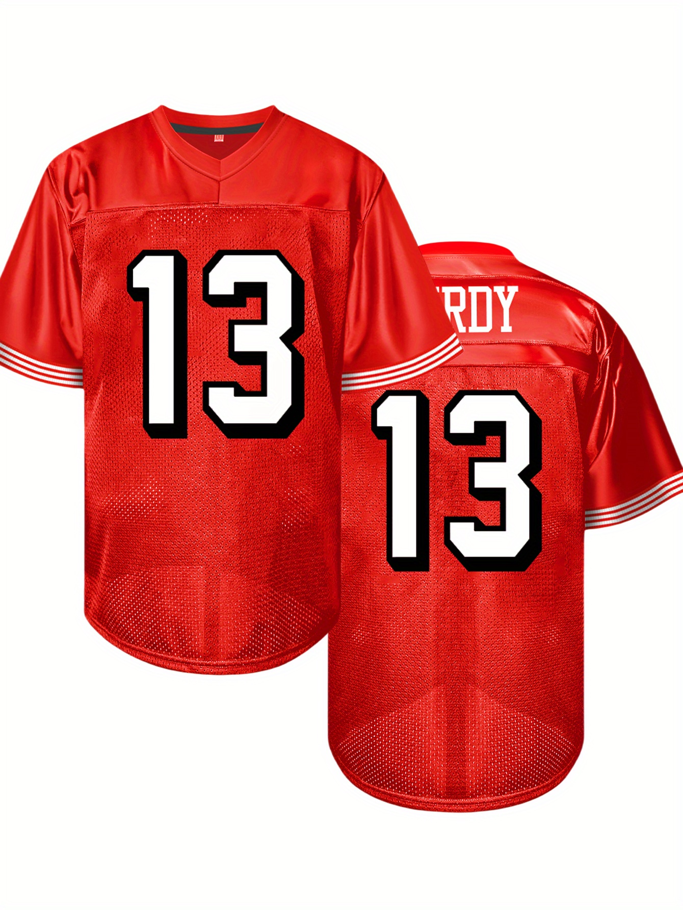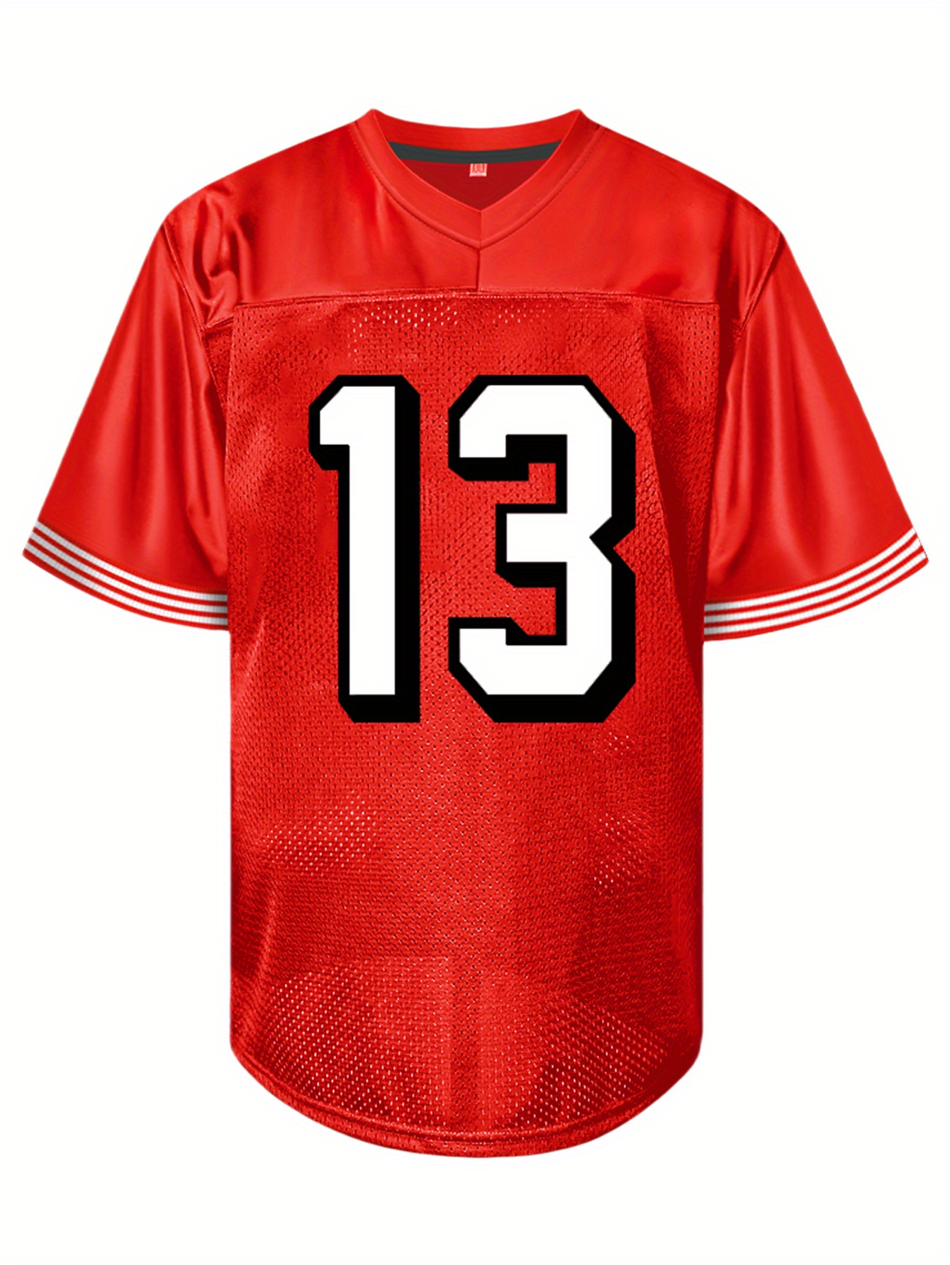 Men's Red #13 Embroidered American Football Jersey - Loose Fit Breathable V-Neck Rugby Shirt for Sports, Casual & Streetwear | All-Season Comfort, Machine Washable, Outdoor Activity Apparel, Sporty Look, Neat Stitching