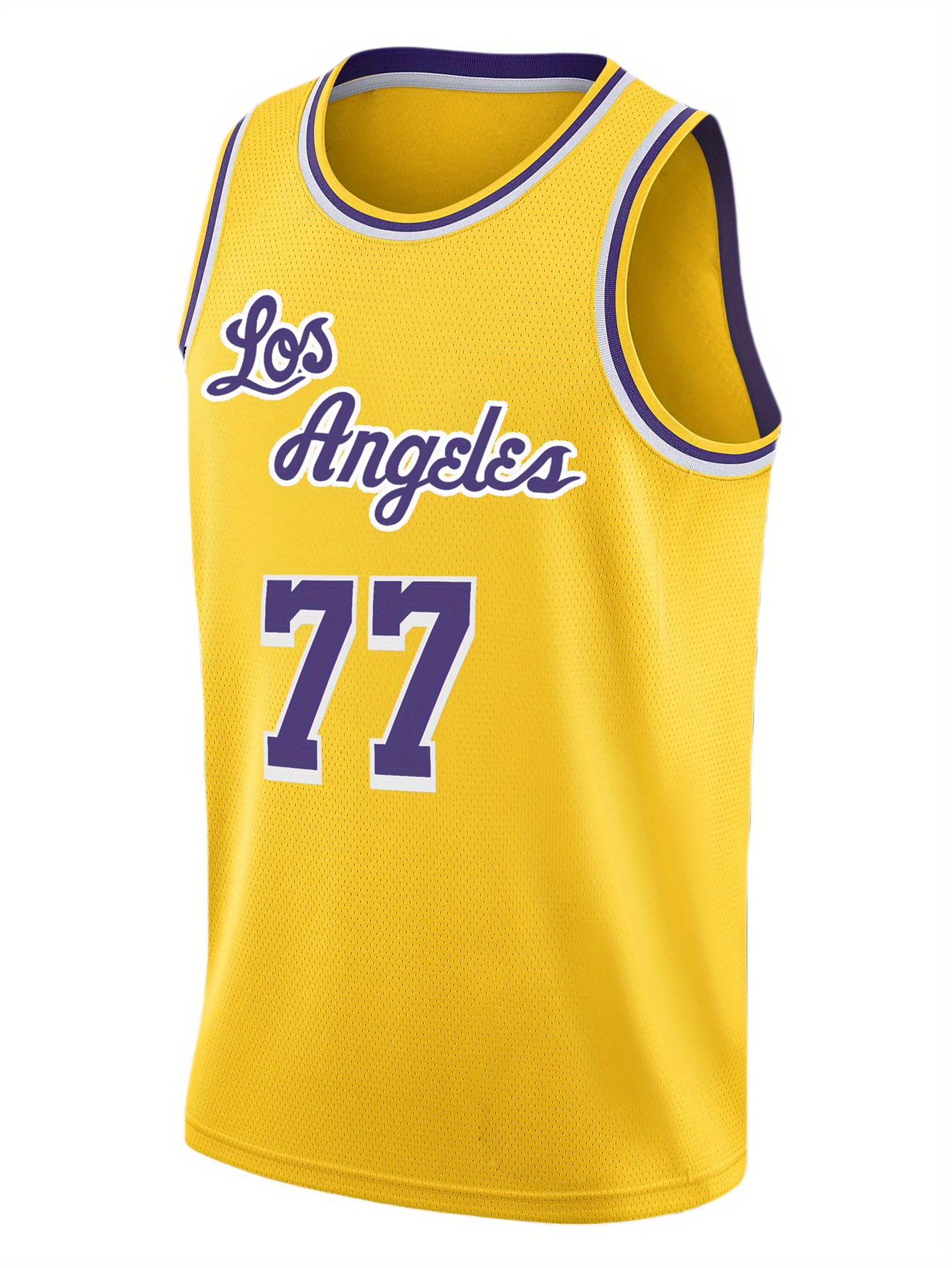 Men's Yellow #77 Basketball Jersey - Retro Embroidered Letter Design, Loose Fit Breathable Fabric, All-Season Casual & Sports Wear, Machine Washable Round Neck Vest for Men & Youths, Basketball Gear, Team Apparel, Durable Sports Apparel