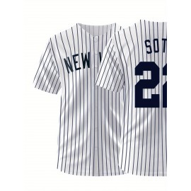 Men'S White Striped # 22 Baseball Shirt, Classic Letter Embroidery Design, Breathable Button Style Short Sleeved Shirt, Suitable for Training And Games