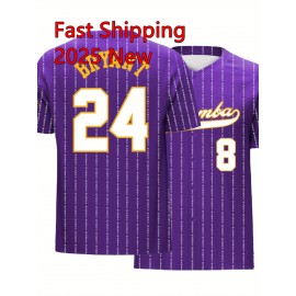 Men'S White Striped Purple # 8-24 Jersey Letter Embroidered Baseball Shirt, Fashionable And Casual, Street Breathable Short Sleeved Sports Shirt