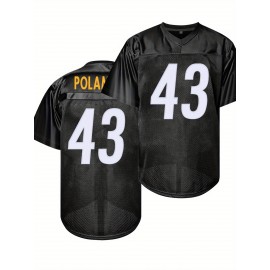 Men'S Black # 43 Breathable Rugby Jersey, Sports V-Neck Short Sleeved Uniform for Training And Matches, Embroidered American Football Shirt
