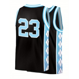 Men'S Blue Black Spliced Diamond Grid Basketball Top # 23 Classic Retro Embroidered Letter Sleeveless Sweat wicking Breathable Tank Top Basketball Suit