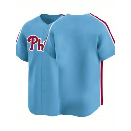 Men'S Moon Blue Baseball Shirt, Classic Letter Embroidery Design, Button Style Short Sleeved Breathable Shirt, Used for Training And Competitions