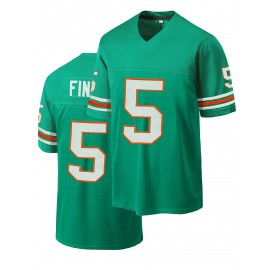 Men'S Green # 5 Breathable Rugby Shirt, Sports V-neck Short Sleeve Training Match Uniform, Embroidered American Football Shirt
