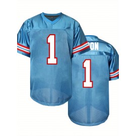 Men'S Moon Blue # 1 American Football Shirt Loose Embroidered Sports, Fashionable, Casual, Street Breathable Rugby Top