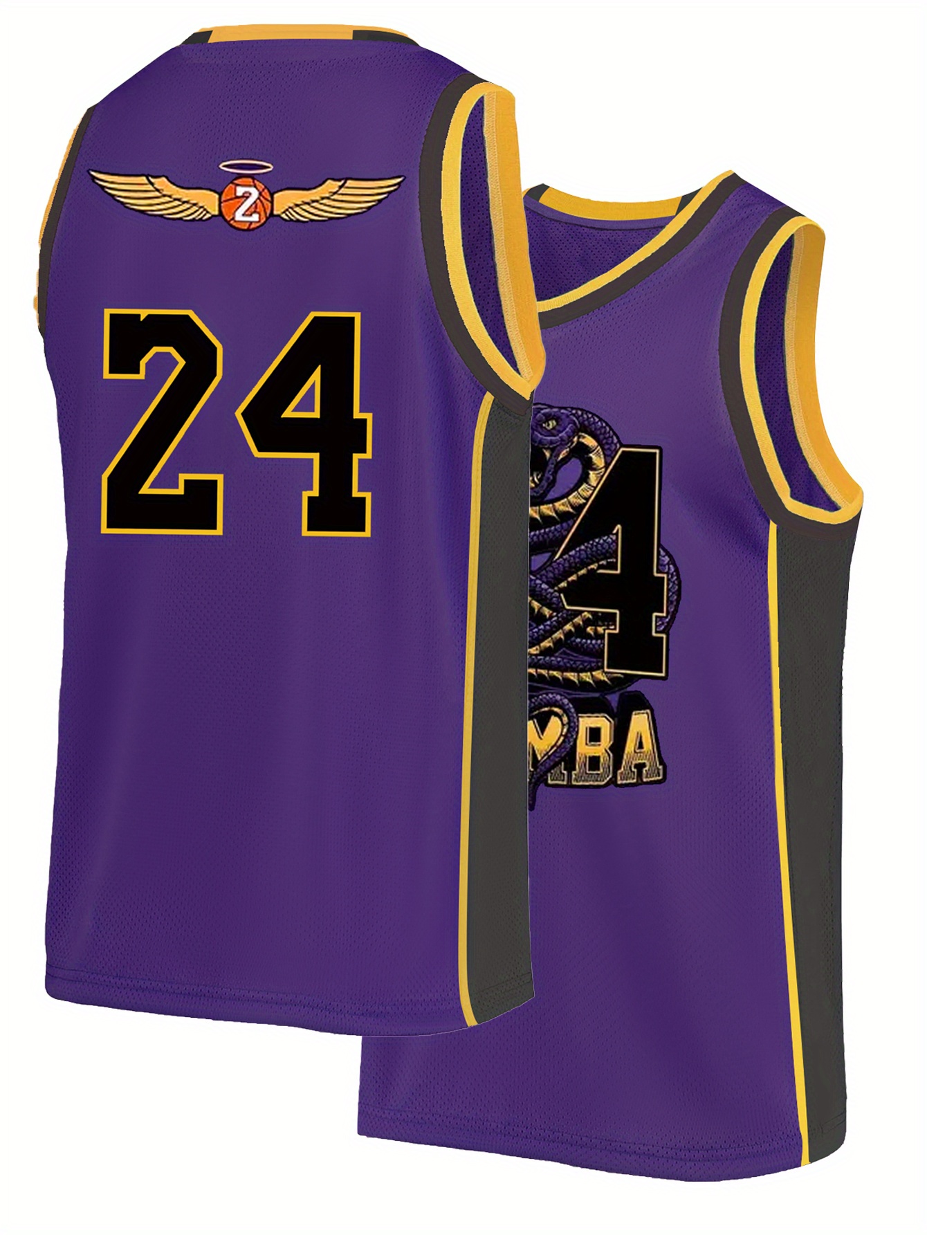 Men'S Purple Snake Skin Basketball Suit # 24 Classic Retro Embroidered Letter Sleeveless Sweat wicking Breathable Tank Top Basketball Suit