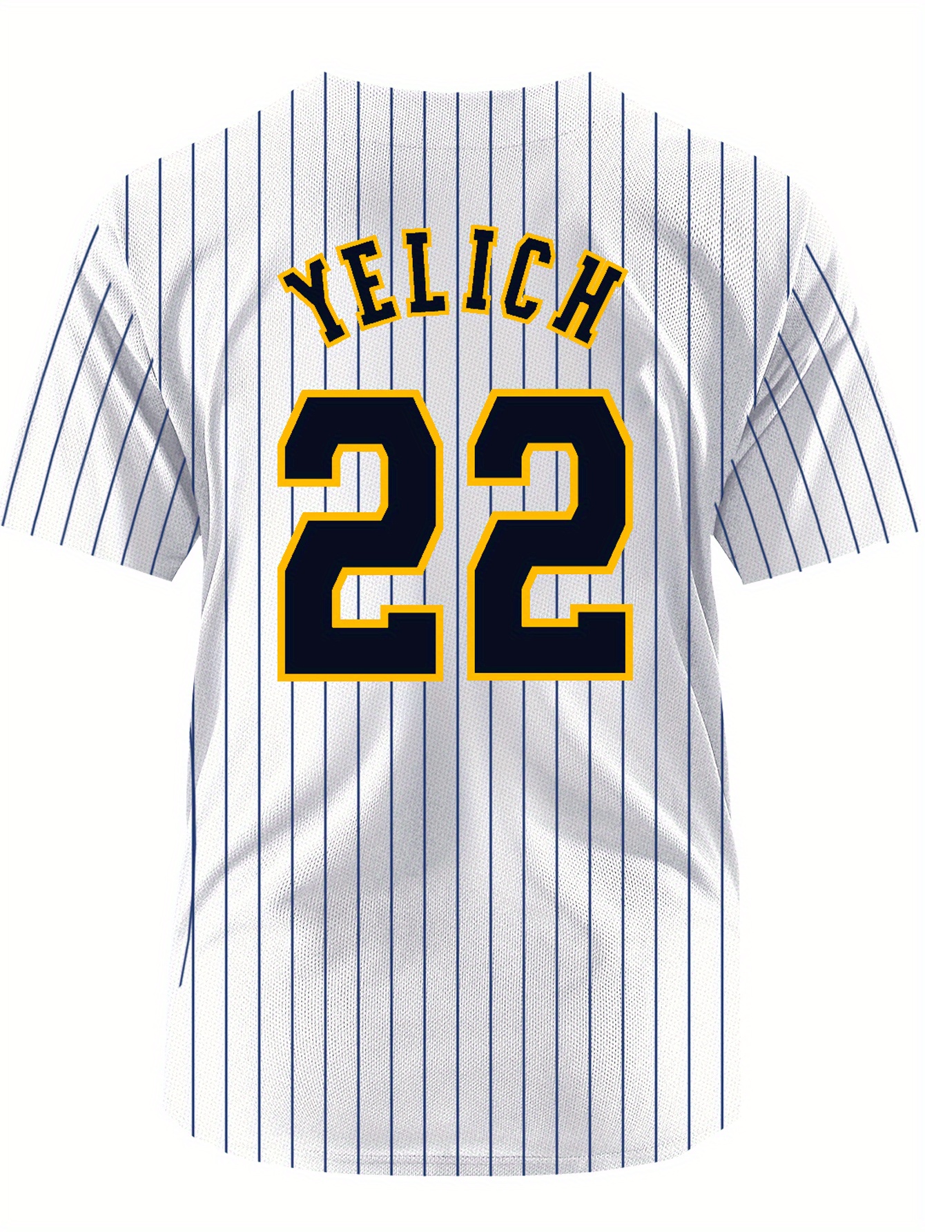 Men's yellow # 4 baseball shirt, street fashion casual, letter embroidered breathable short sleeved sports shirt