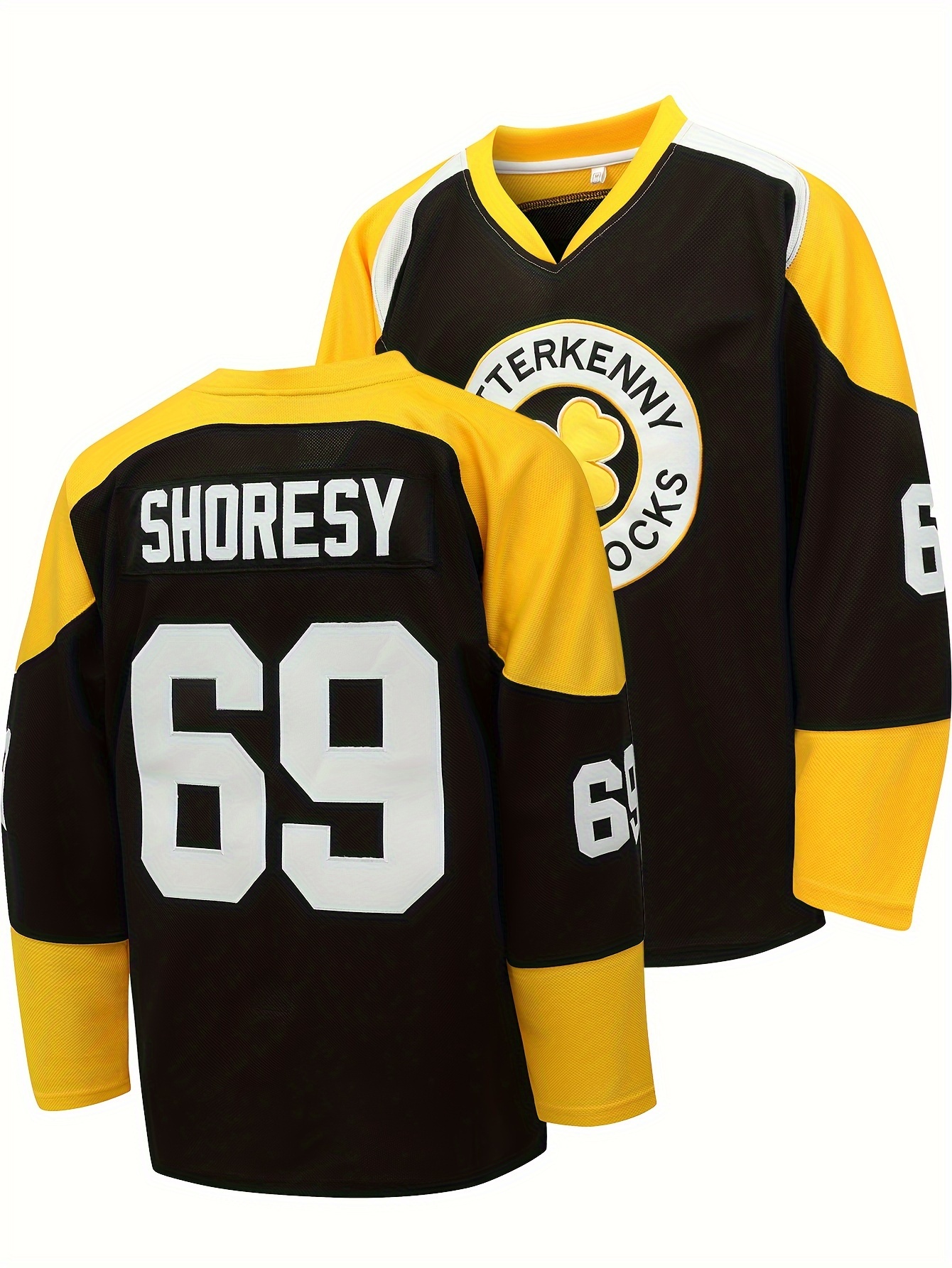 Men's Yuelan #69 Embroidered Dog Ice Hockey Shirt - Breathable, Loose Fit, Long Sleeves, Sports Fashion Casual Wear for Street, Outdoor Activities - Comfortable, Moisture-Wicking Fabric, Perfect for Hockey Fans