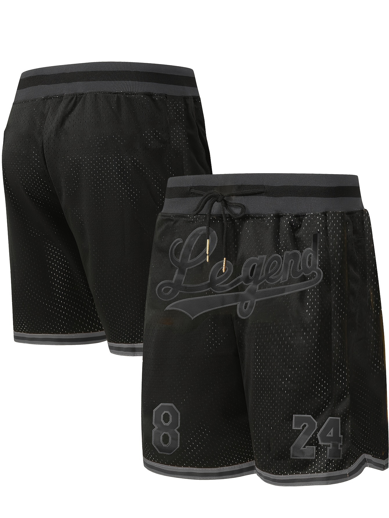 [Size 8-24 Basketball Shorts] Men's all black # 8-24 basketball shorts, classic letter embroidery design, button style short sleeved breathable shirt, suitable for training and competition
