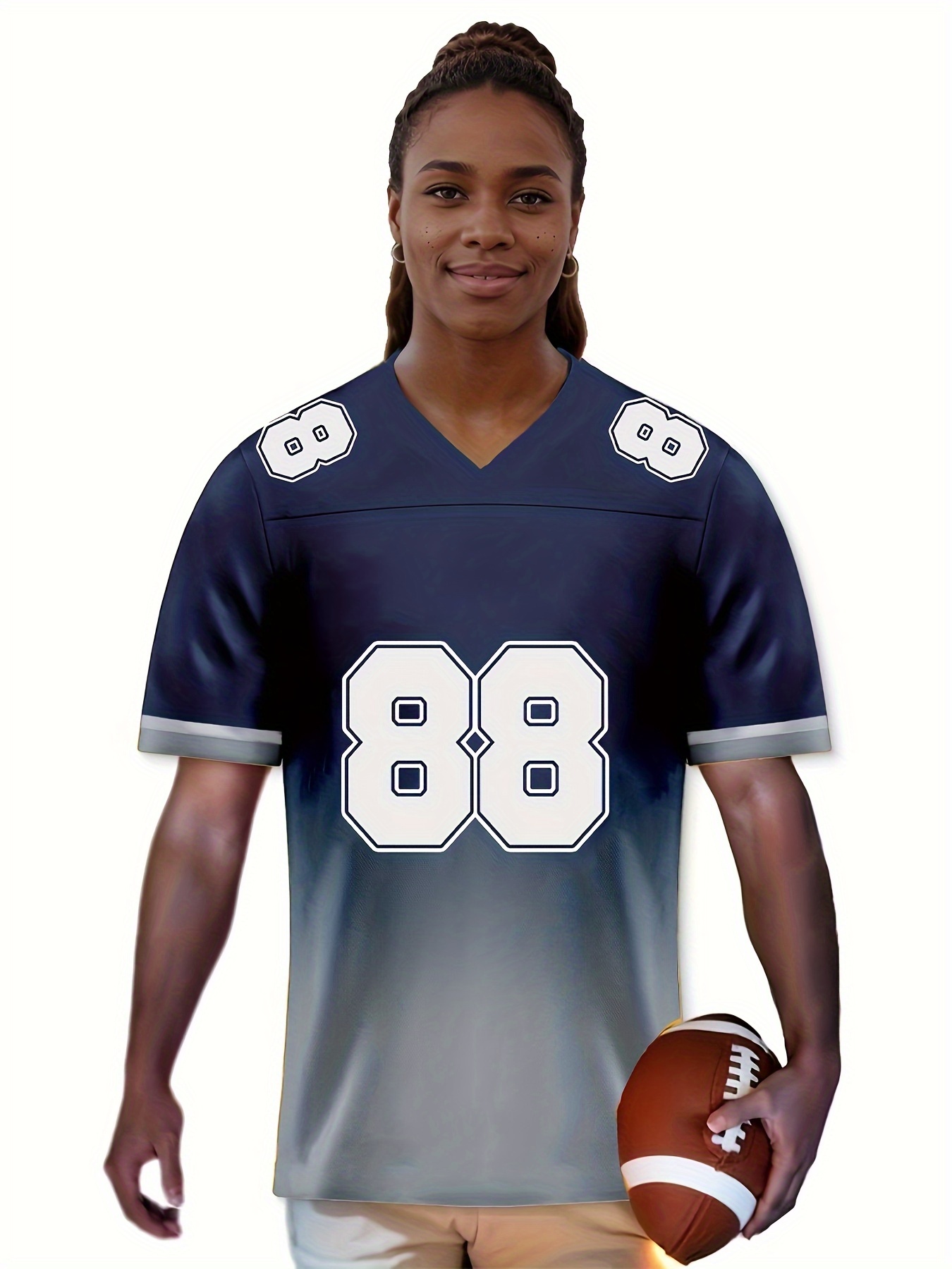 Women's Dallas #88 Polyester Football Jersey, Women Gradient V-Neck Sports Shirt With Slight Stretch, Breathable Casual Knit Fabric For All Seasons, Loose Fit Adult & Teen, Fans Gift Women Youth
