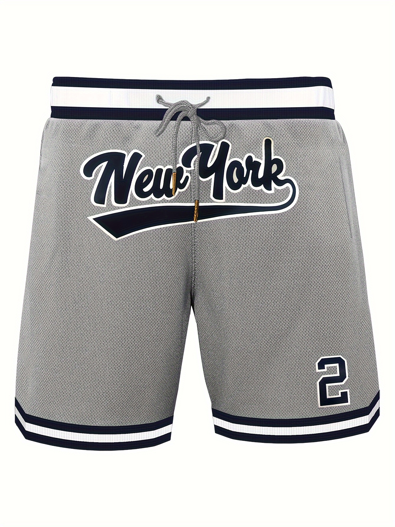2 Embroidery Breathable Men's Letter & Number Basketball Shorts, Athletic Drawstring Shorts For Training & Competition