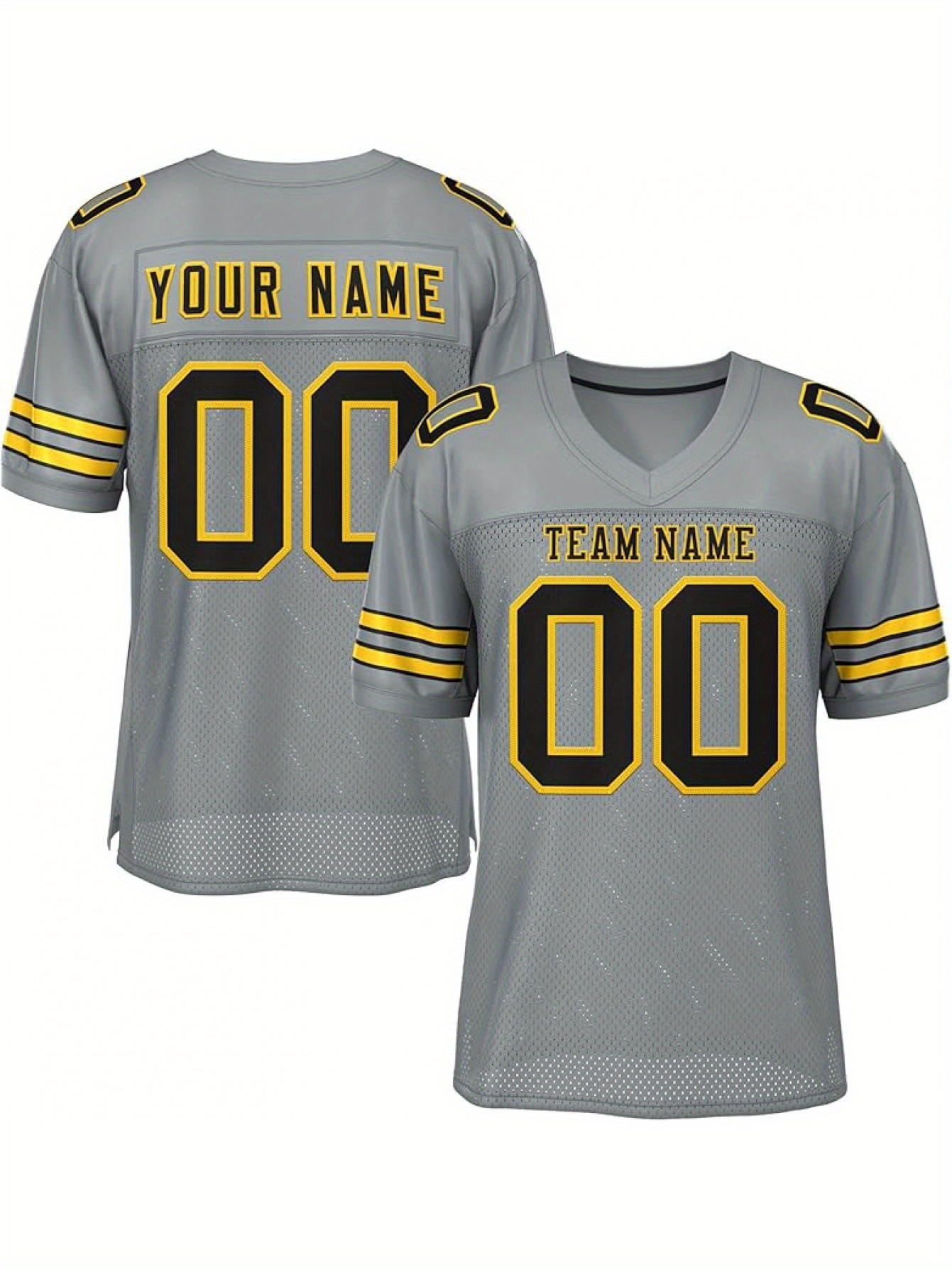 Customized Fitted Plus Size Football Jersey, Personalized Team Name Number, Large Size Women'S Sports Jersey, V-Neck, Non-Stretch Fabric, Print, Summer, with Team Logo, for Sports Activities