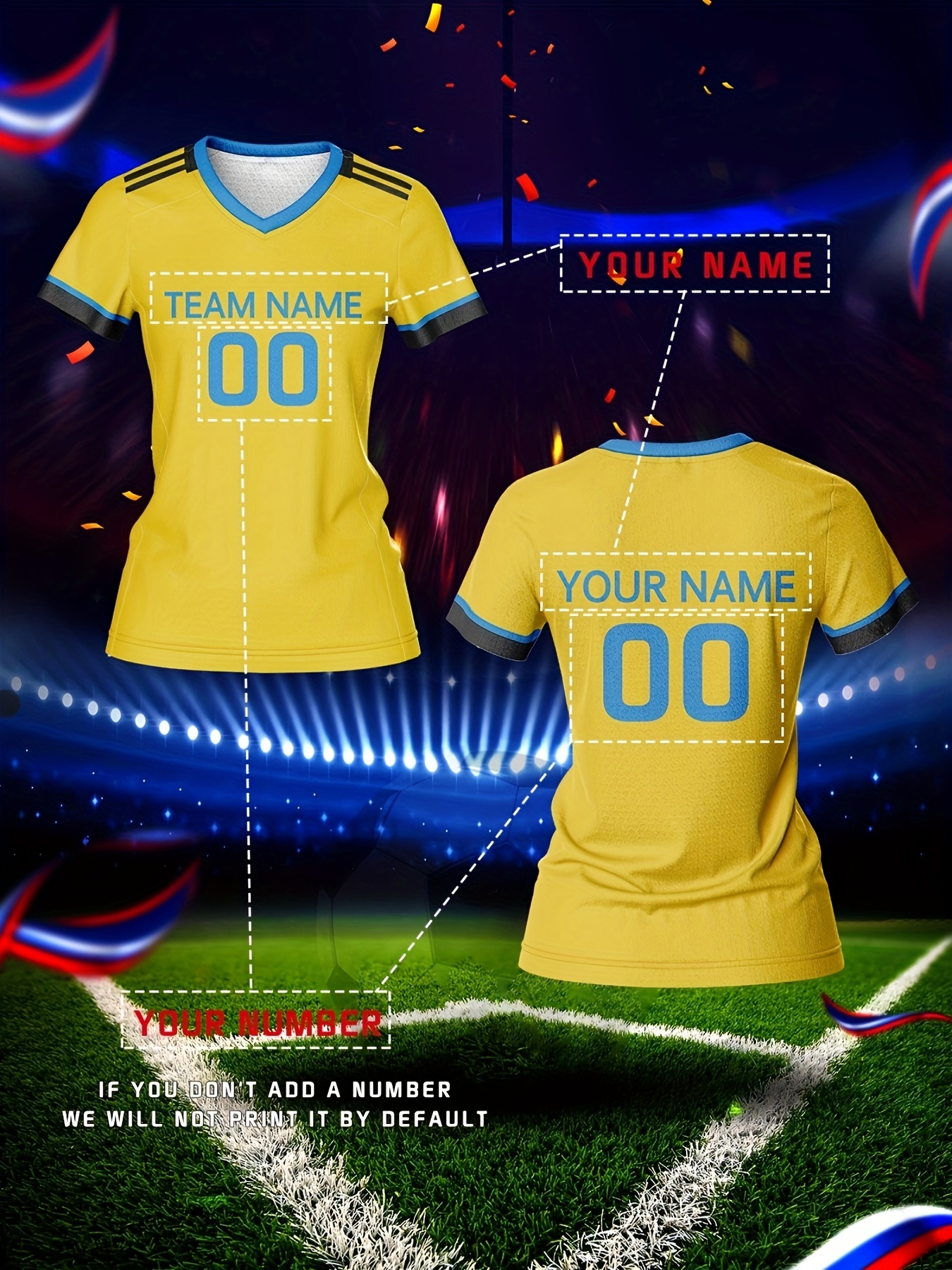 Custom Name and Number Women'S V-Neck Football Jersey, Sports Style, Polyester, Slight Stretch, All Over Print, Regular Length, Spring/Summer/Fall, Knit Fabric, 210 g/m²