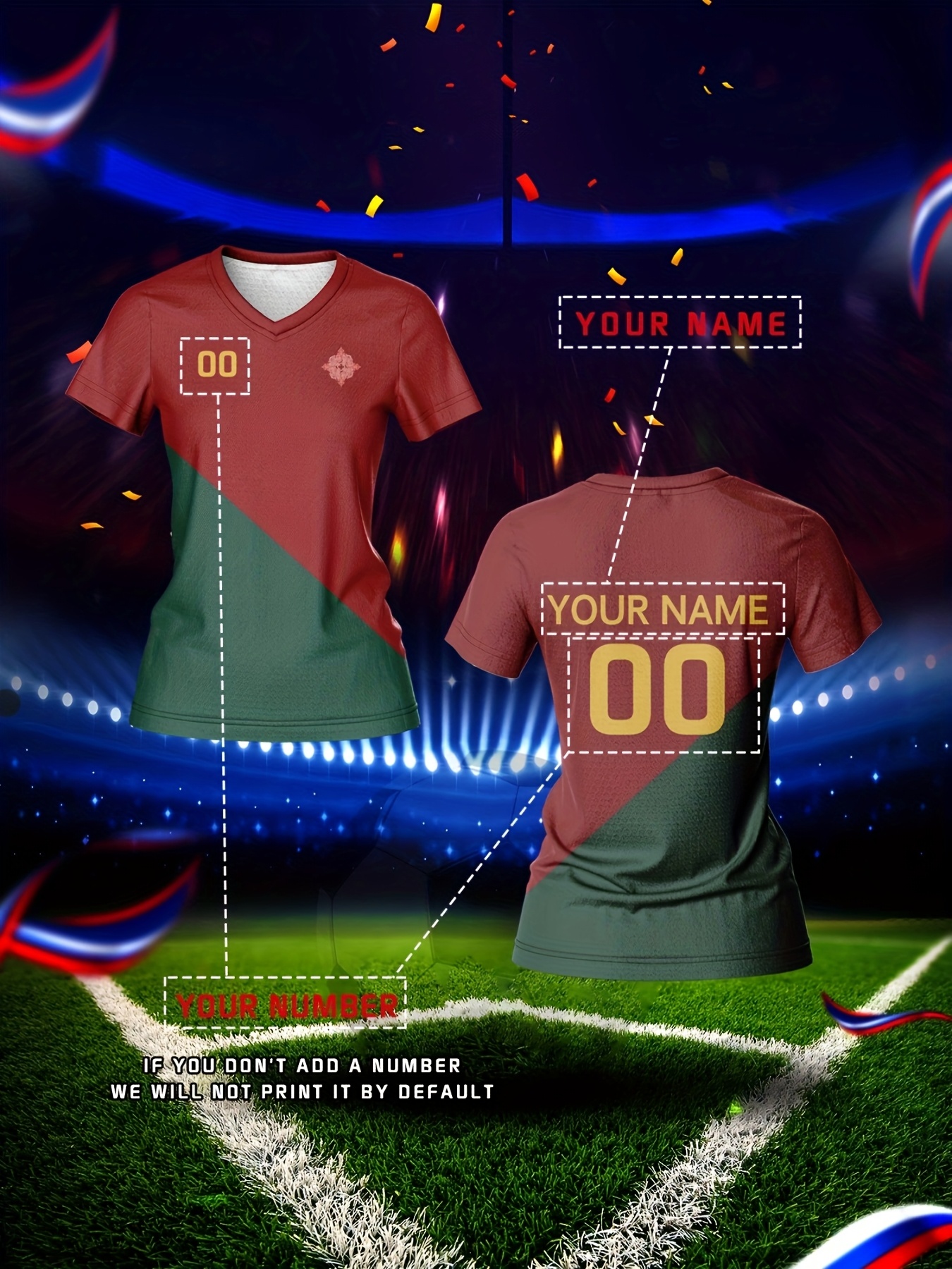 Custom Name and Number Women'S V-Neck Football Jersey Team Training Sportswear Comfortable Breathable Quick-Dry Casual Wear