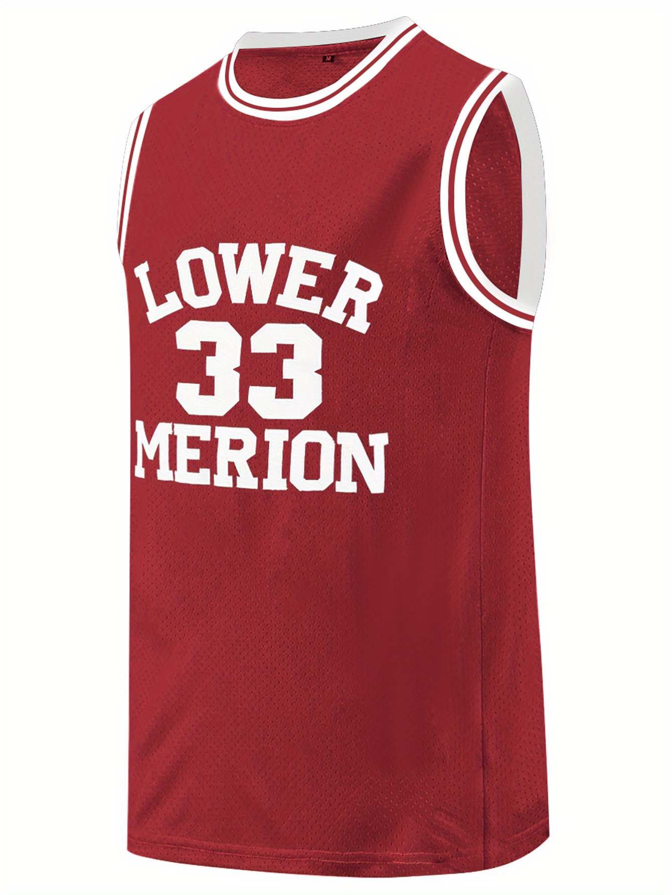 Men'S #33 Red Basketball Jersey, Classic Retro Embroidered Letters, Sleeveless Moisture-Wicking Breathable Vest, Round Neck, Casual Athletic Wear for Training, Running, Outdoor Activities & Team Sport