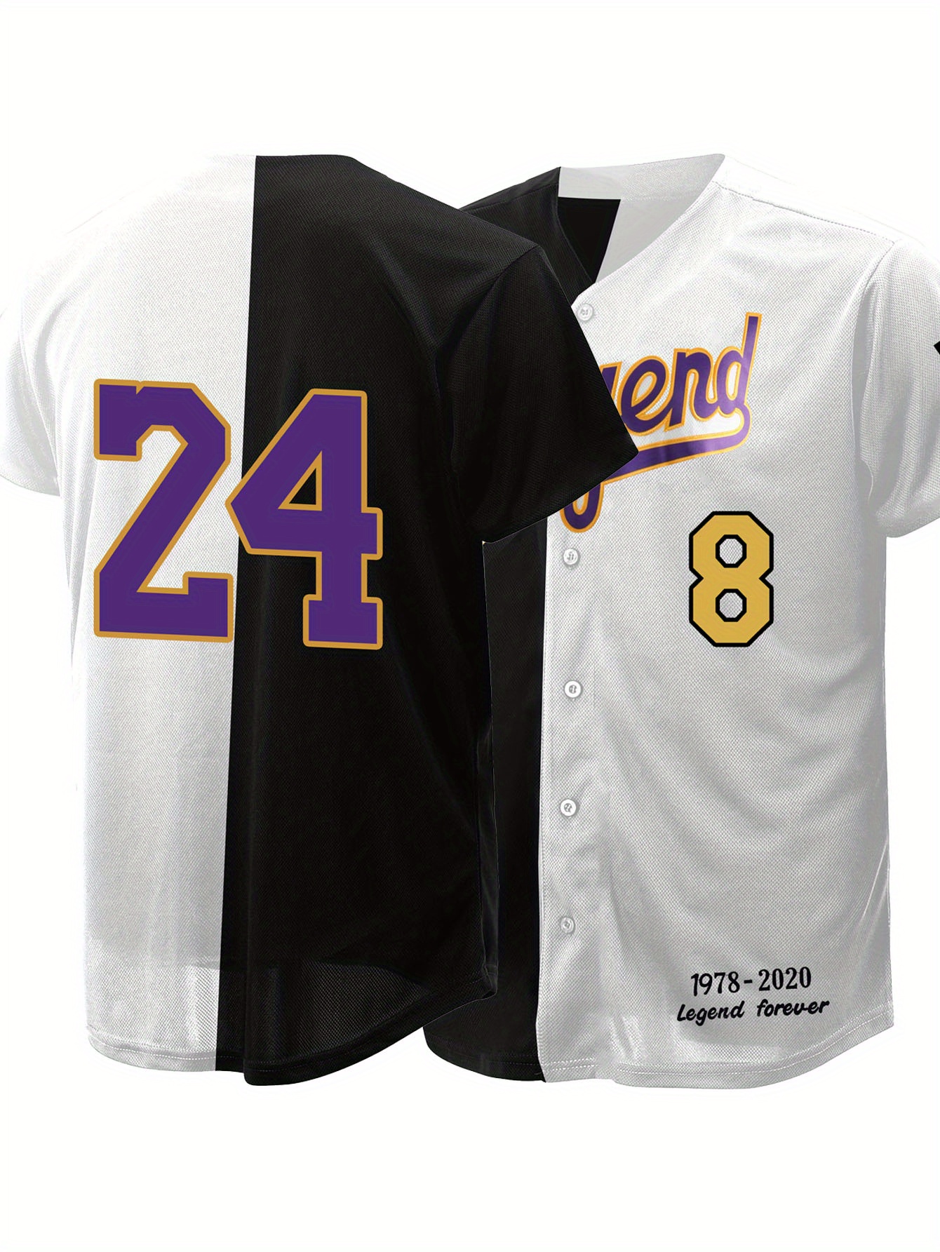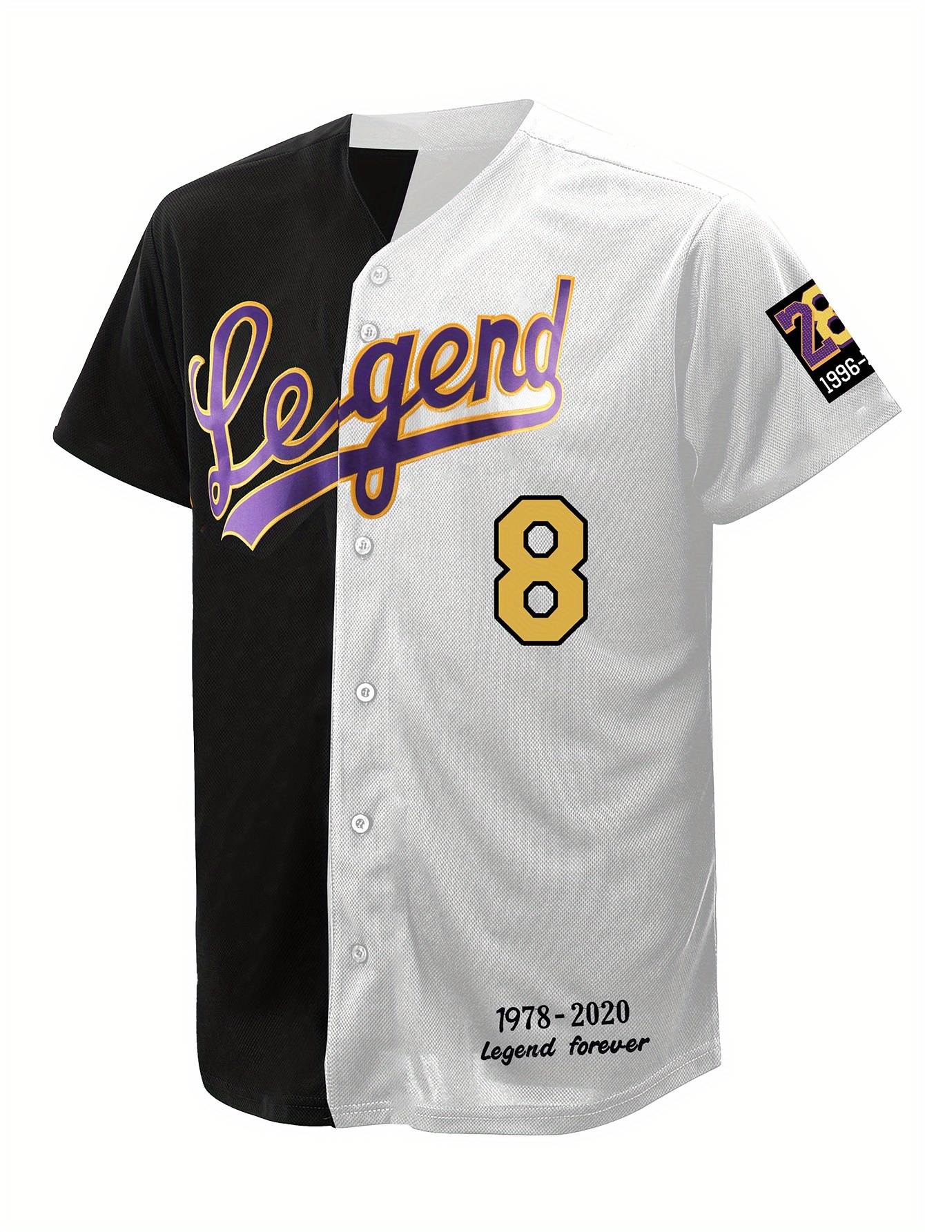 Men's #8-24 Los Angeles Legend Baseball Jersey - Black & White Patchwork, Embroidered "LEGEND FOREVER" Design, Breathable V-Neck, Casual Streetwear for Fans & Players, Streetwear Fashion | Vneck Jersey | Breathable Fabric, SHLUCKI