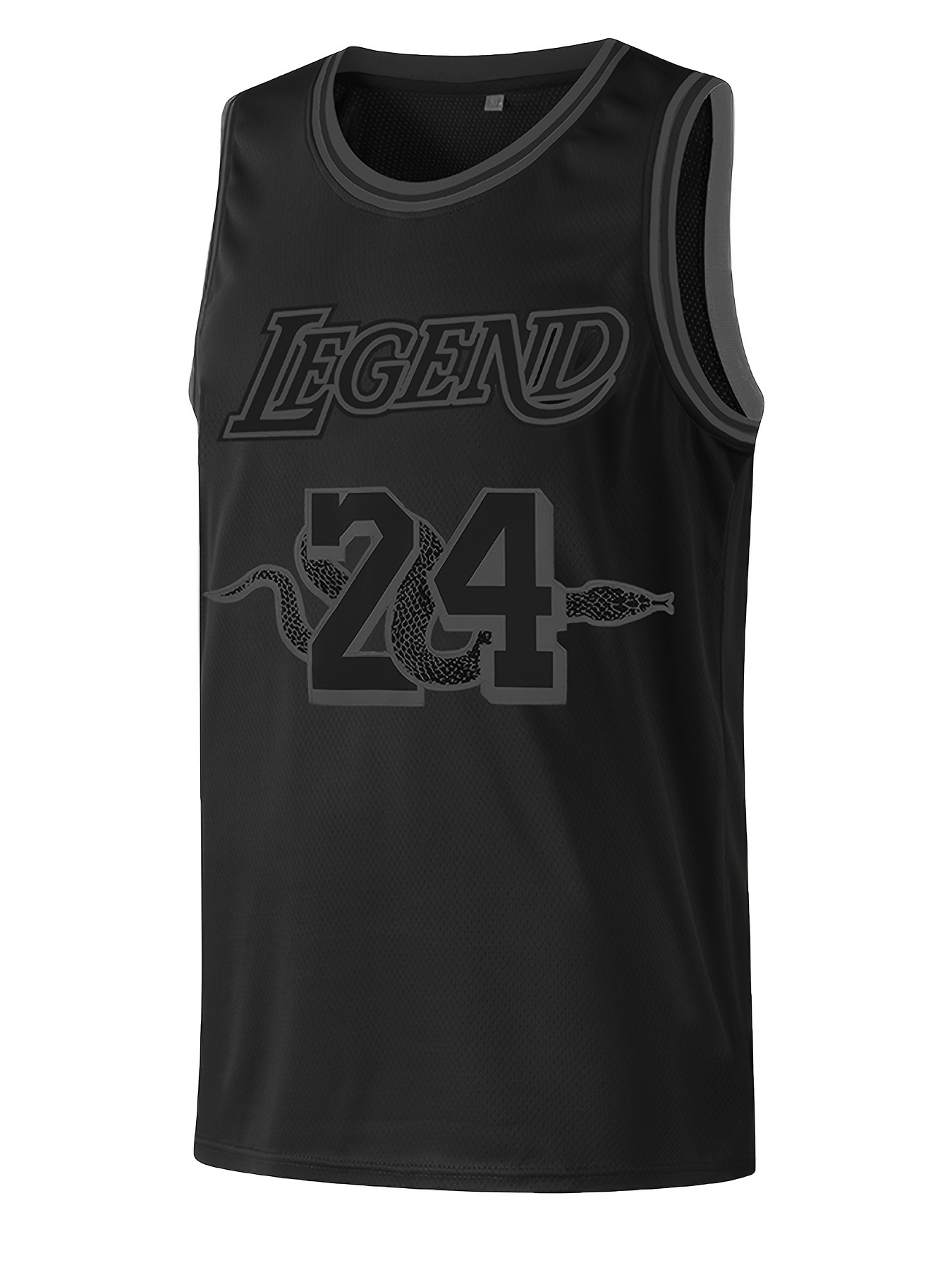 Men's All Black Basketball Suit # 24 Classic Retro Embroidered Sleeveless Sweatwicking And Breathable Tank Top Basketball Suit