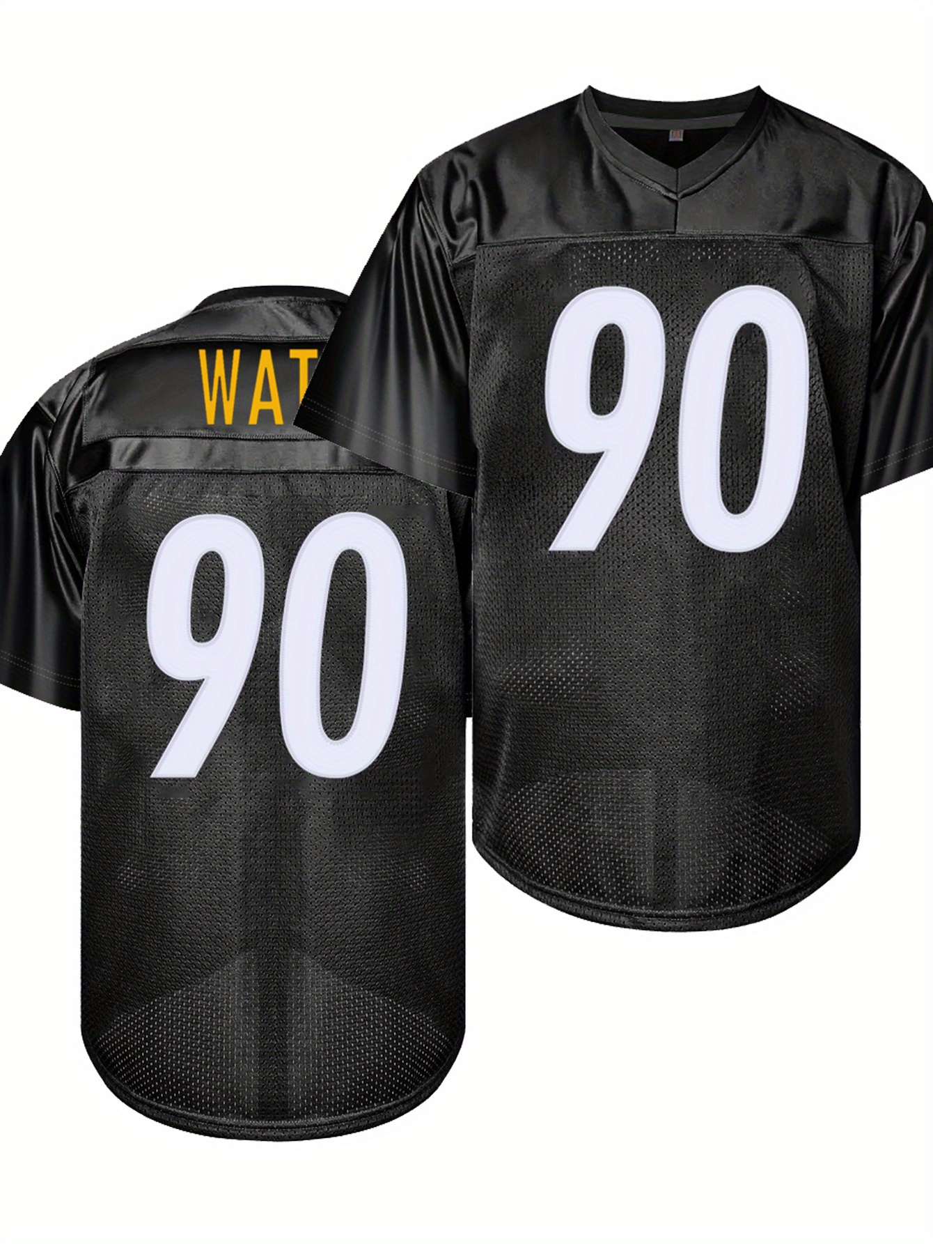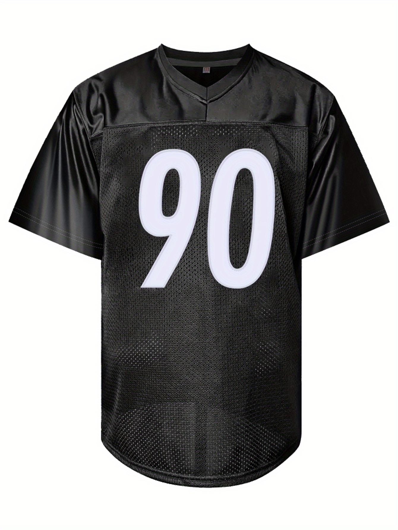 Men'S Black # 90 Breathable Rugby Jersey, Sports V-Neck Short Sleeved Uniform for Training And Matches, Embroidered American Football Shirt