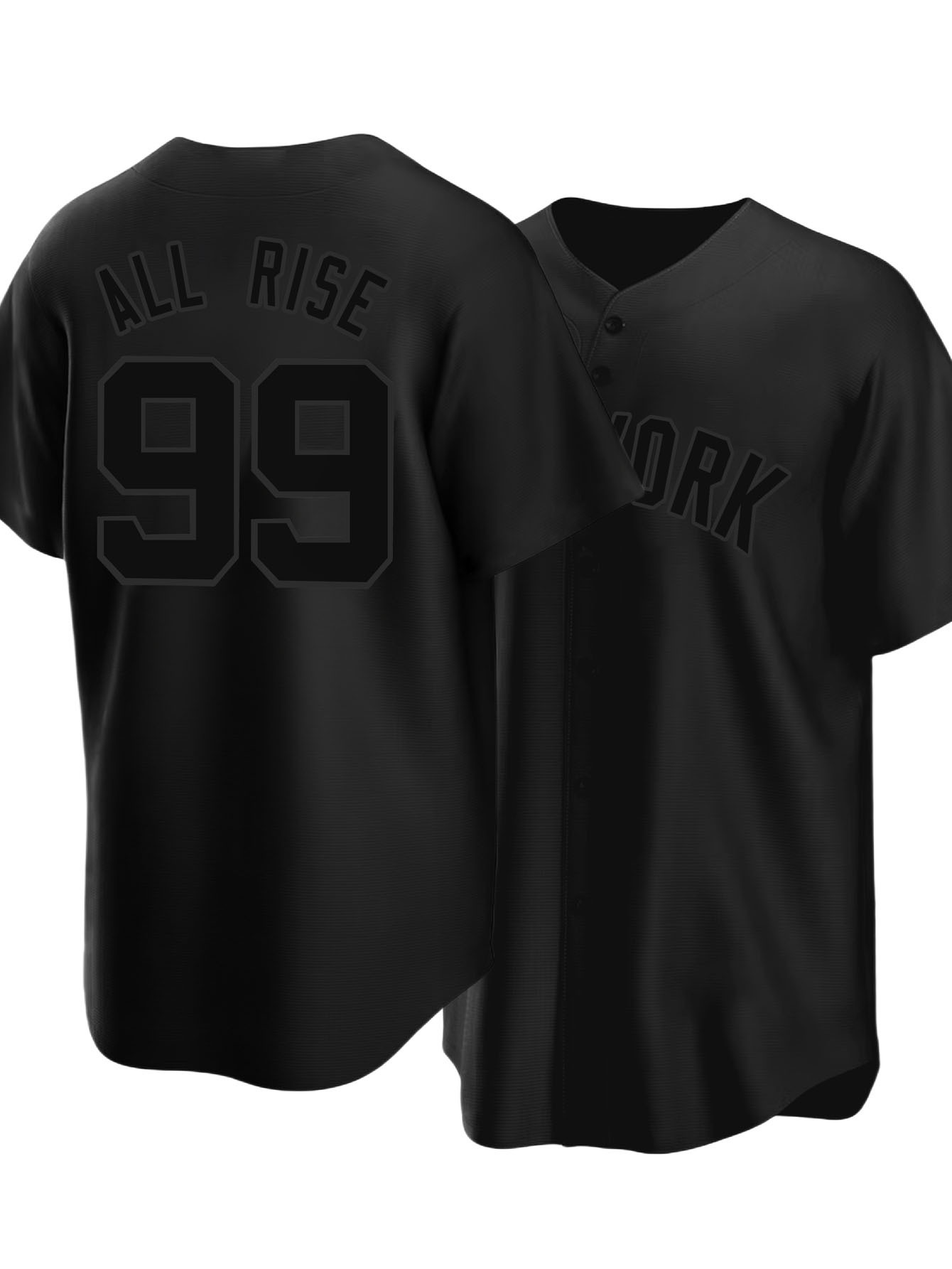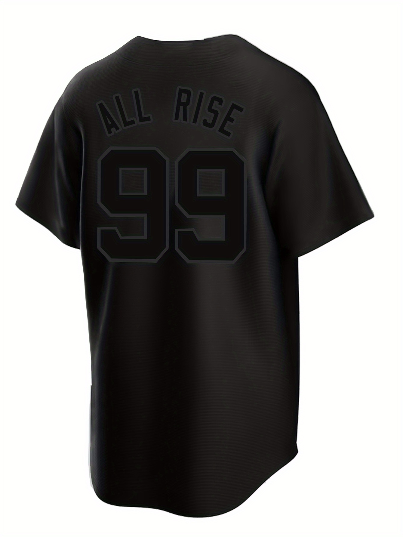 Men's Black #99 Baseball Shirt - Loose Fit Embroidered "ALL RISE" V-Neck Button-Up, Breathable Streetwear for Sports & Casual Wear, All-Season Comfort, Machine Washable, Outdoor Activity Apparel, Sporty Design, Embroidered Detailing