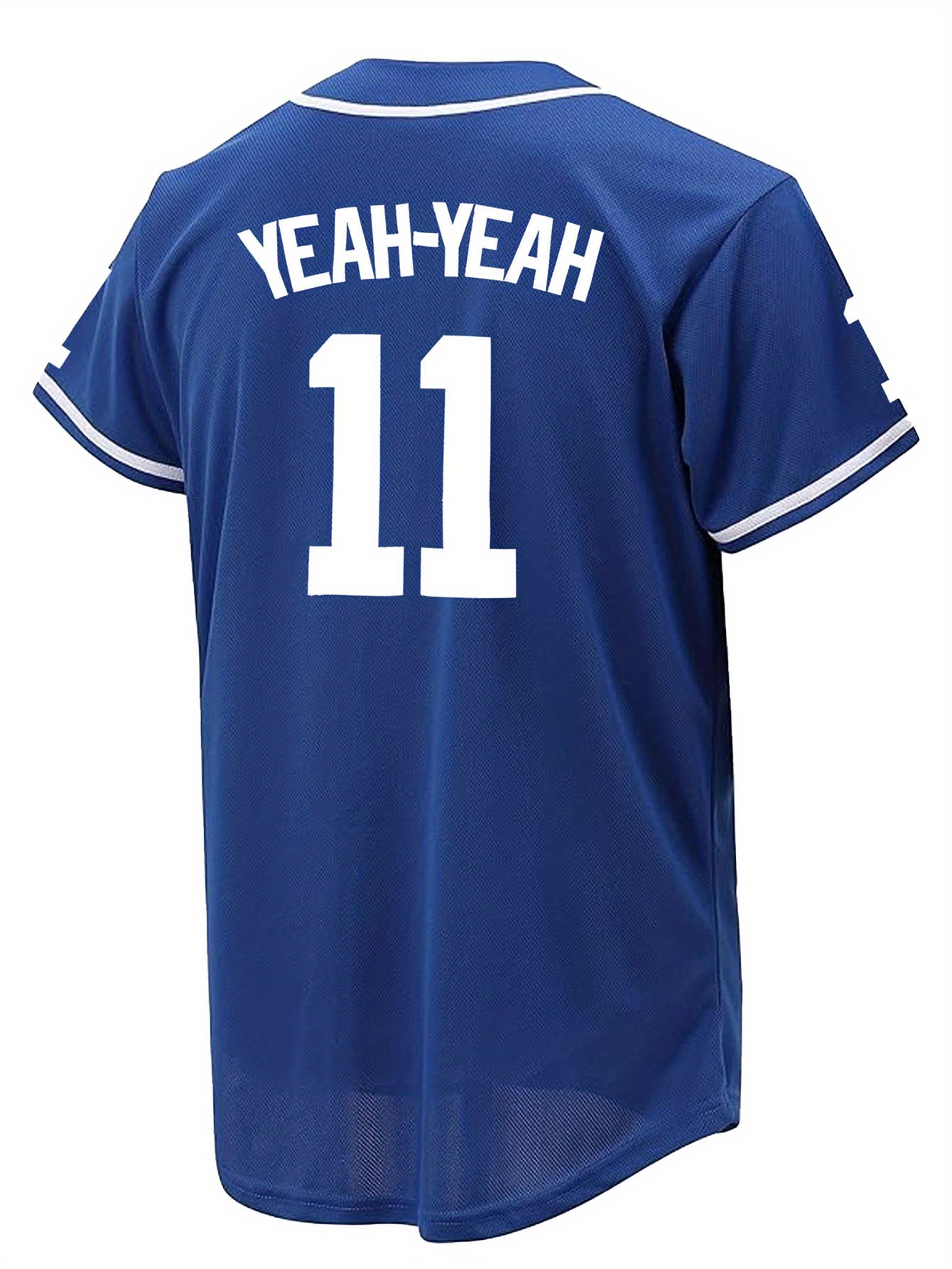 Men'S Blue # 11 Baseball Shirt, Classic Letter Embroidery Design, Button Style Short Sleeved Breathable Shirt, for Training And Competition Use