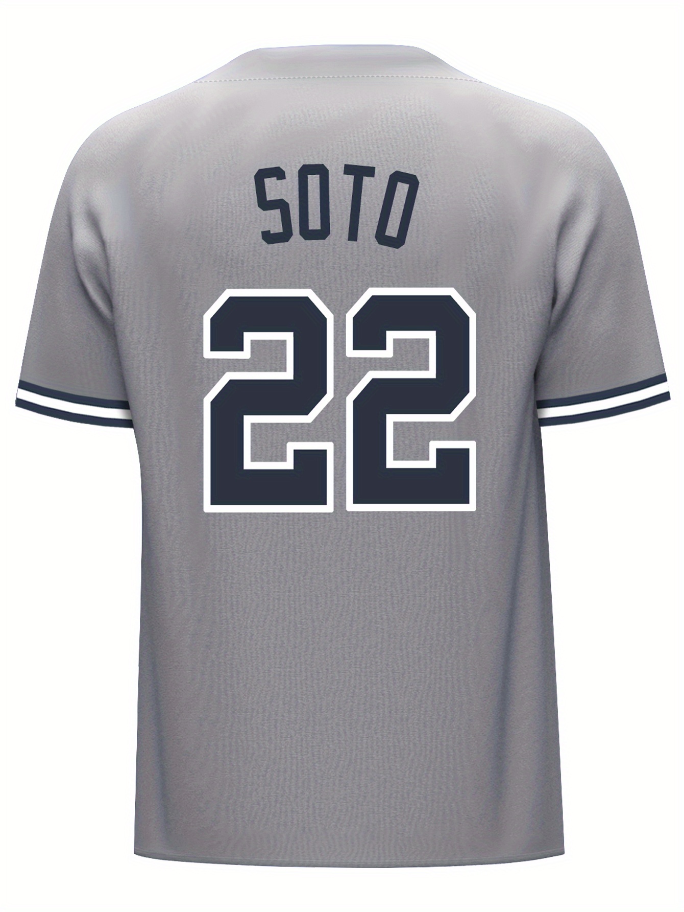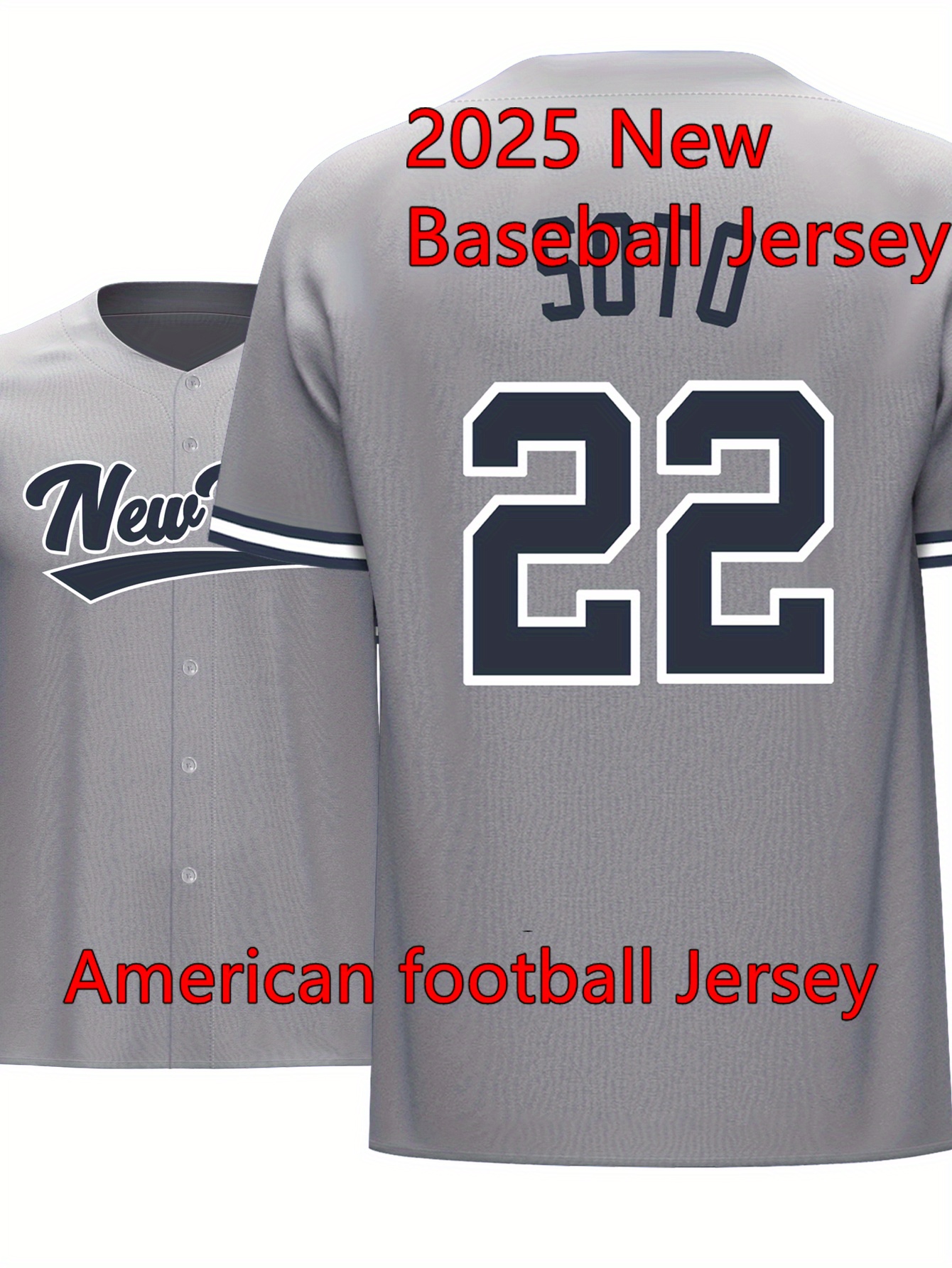 Men's Grey #22 Baseball Jersey - Loose Fit V-Neck Embroidered Sports Shirt, Breathable Button-Up Top for Casual Streetwear, Outdoor Activities & All-Season Wear (Adults & Teens)