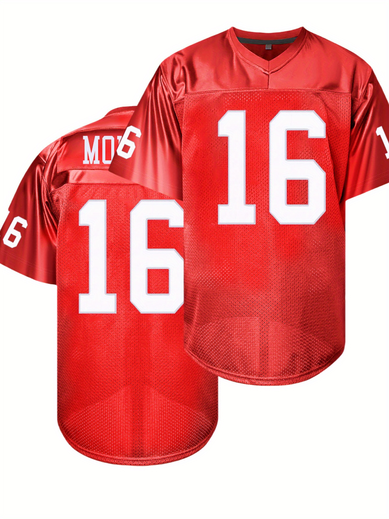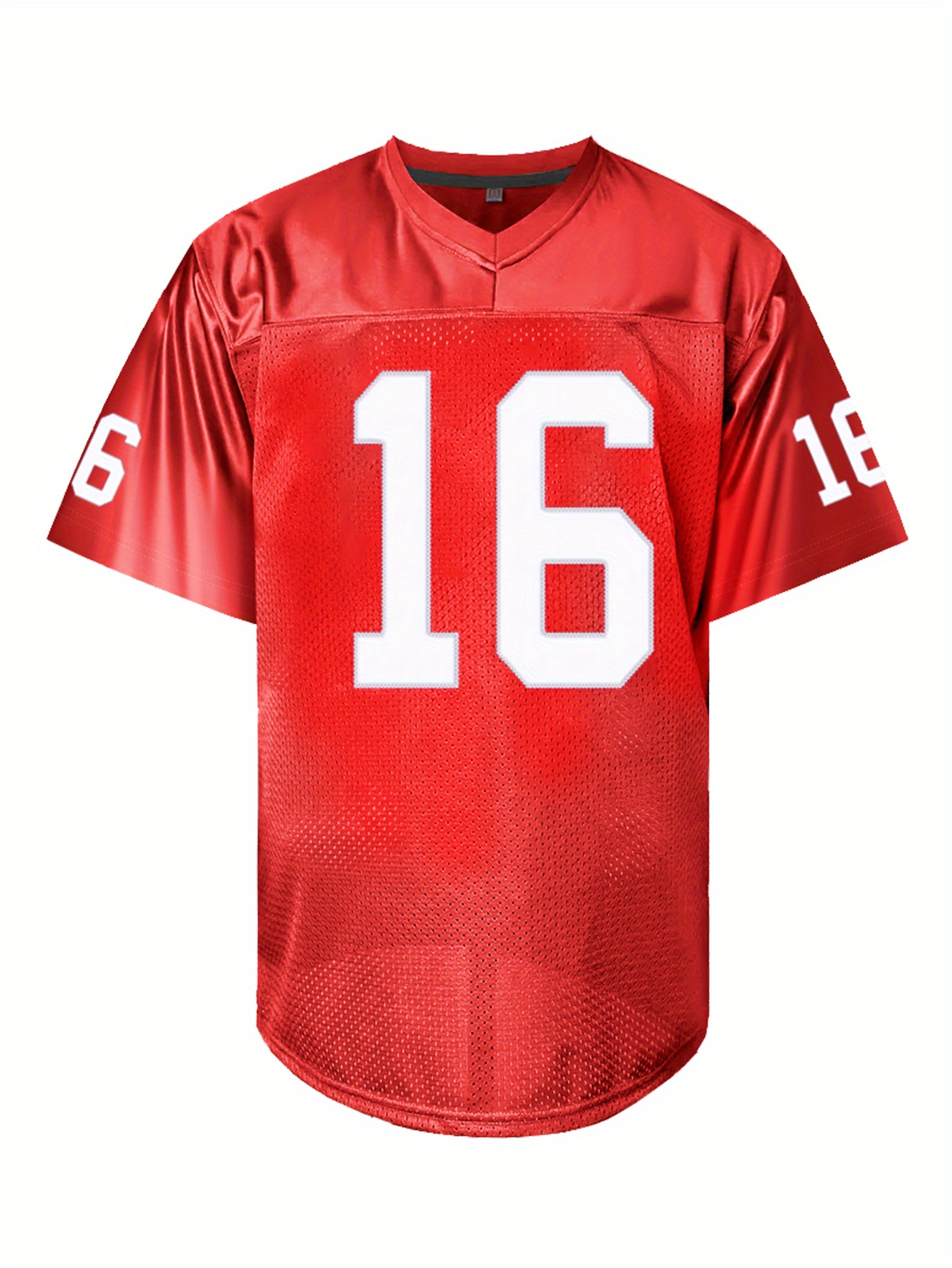 Men's Red #16 American Football Jersey - Loose Fit Breathable V-Neck Embroidered Rugby Shirt for Sports, Casual & Streetwear | All-Season Outdoor Top for Men & Teens, Rugby Jersey, Durable Sportswear