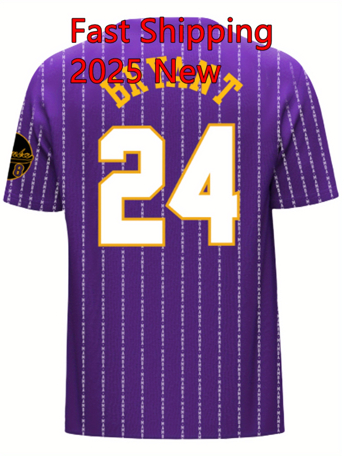 Men'S White Striped Purple # 8-24 Jersey Letter Embroidered Baseball Shirt, Fashionable And Casual, Street Breathable Short Sleeved Sports Shirt
