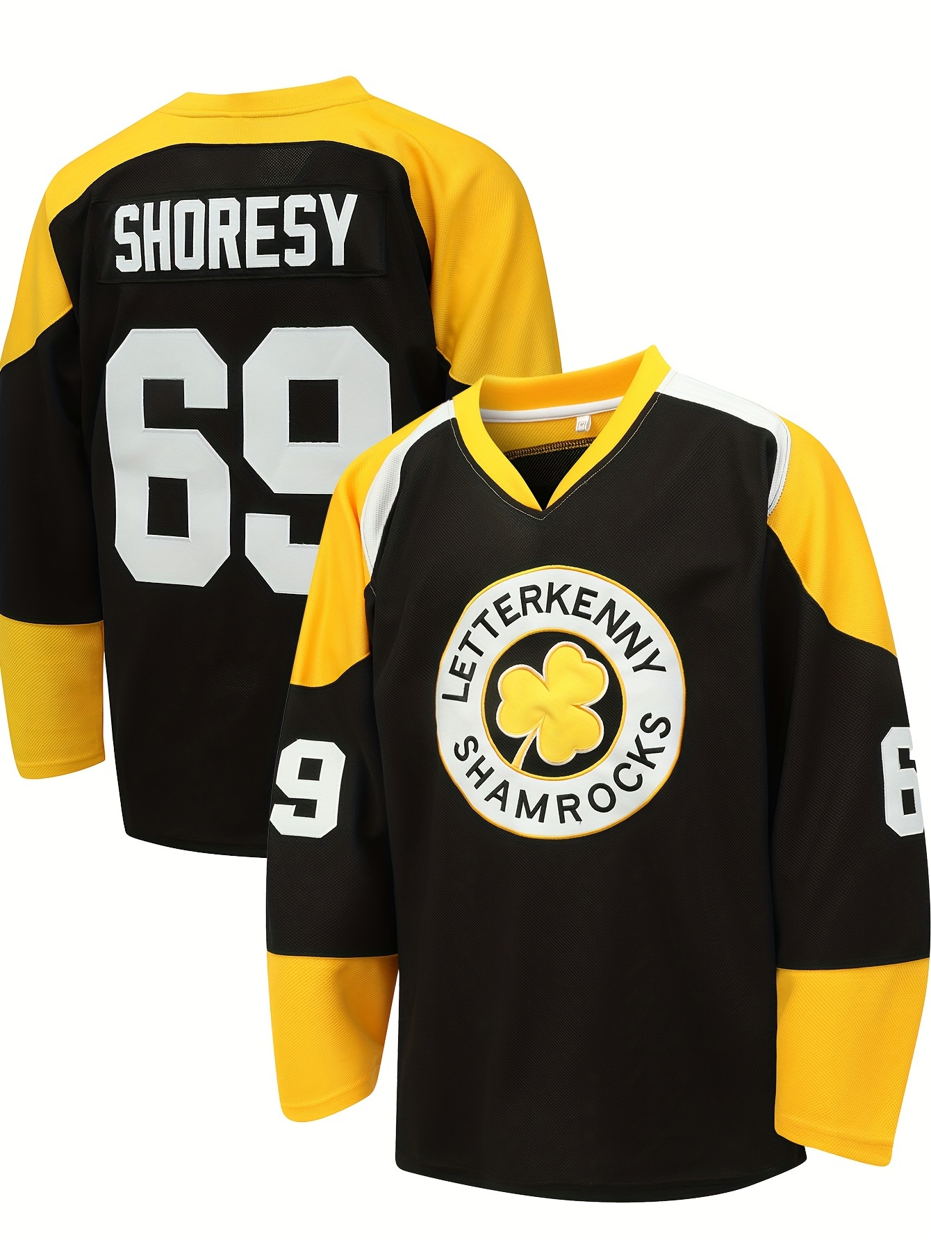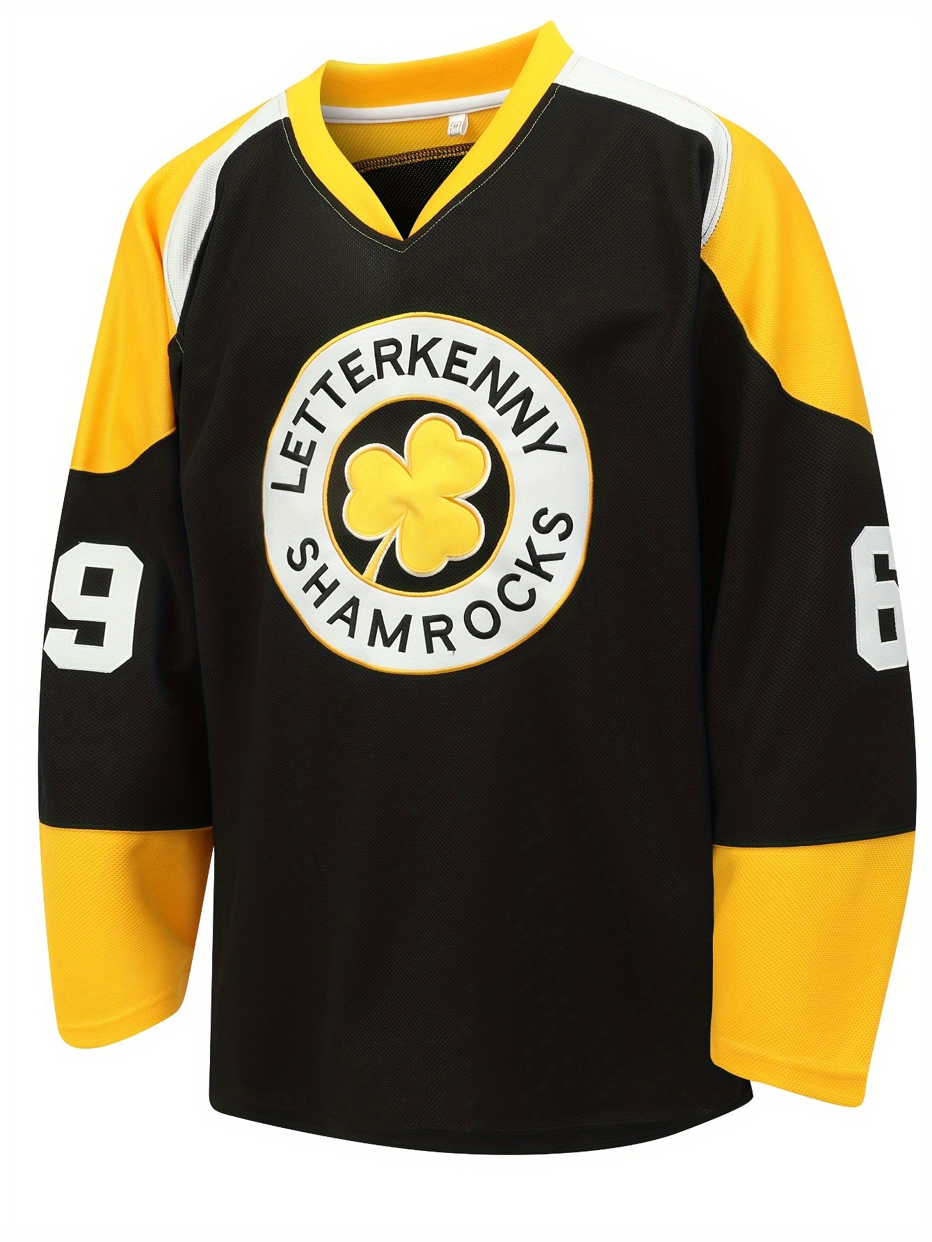 Men's Black # 69 Ice Hockey Sports Shirt, Loose Embroidered Long Sleeves, Sports Fashion Casual, Street Breathable