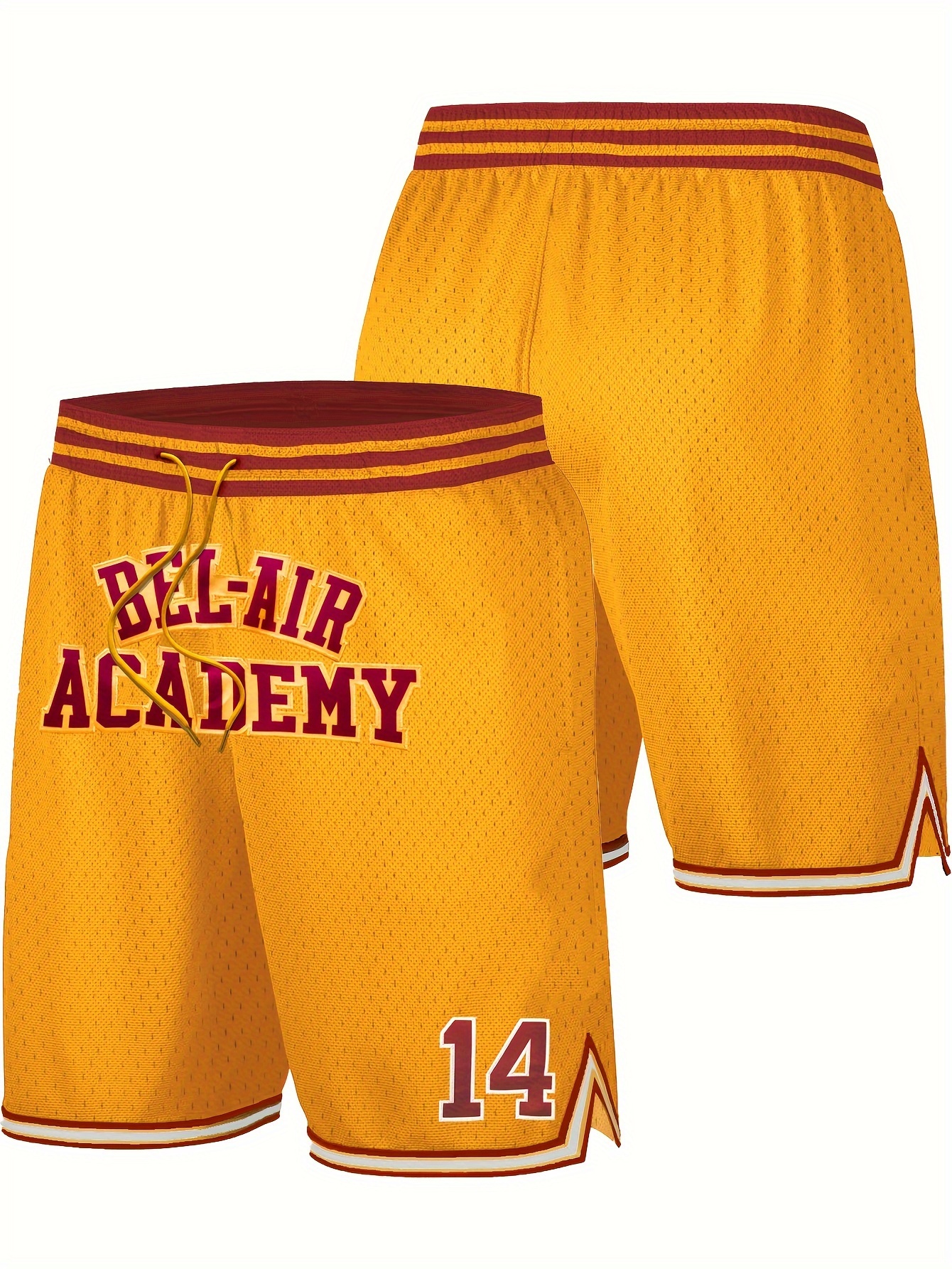 Men's Yellow #14 Baseball Shorts with BEL-AIR ACADEMY Embroidery - Breathable Athletic Shorts, Loose Fit for Training, Competition & Casual Wear - Machine Washable Sportswear for Men & Teens, Adjustable Elastic Waistband